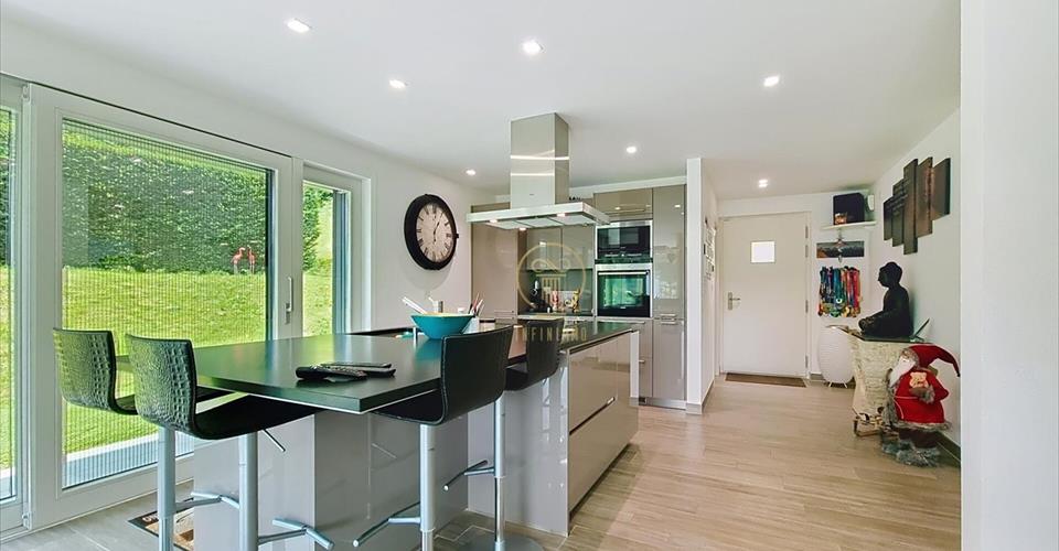 A VISITER, OBJET RARE ! CORSIER-SUR-VEVEY, superbe villa individuelle de 61/2 pièces sur une parcelle de 820m2. Vous serez surpris et séduit par cette magnifique villa de 240m2 de 6 1/2 pièces. Les matériaux ont été choisi avec goût et de manière à accentuer la lumière de cette villa orientée plein sud. Elle est située dans un quartier calme et résidentiel et bénéficie d’une ouverture sur le lac. Par ailleurs, le sous-sol également de 120m2 a été complètement aménagé avec une pièce fitness et peut être chauffé. Cette villa a été construite en 2012 et sa toiture est neuve. La distribution de ses 240m2 sans compter le sous-sol est la suivante : Rez : Espace fermé bien pensé pour le rangement à l’entrée Très grand séjour / cuisine ouverte avec une belle surface jardin Chambre de belle taille Salle de bains avec douche italienne Etage : 4 chambres à coucher de très belles tailles dont une parentale avec salle de bains et douche italienne. Salle de bains supplémentaire avec baignoire Sous-sol : 1 espace fitness Cave et local technique avec chauffage au gaz, sol Cuve de récupération de l’eau de pluie, très simple au niveau de l’entretien Panneaux photovoltaïques Garage double