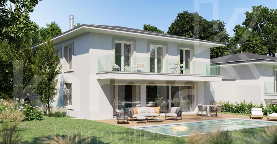 Conçu dans un esprit sobre et contemporain, ce nouveau projet de deux villas individuelles offre un confort de vie sans pareil. Réparties sur 2 niveaux + sous-sol, les villas ont été pensées avec soin et offrent une surface utile de 336 m2. Elles bénéficient de lumière naturelle grâce aux grandes baies vitrées s’ouvrant sur le jardin et sur la terrasse à l’étage. Les deux villas sont disposées de façon à garantir calme et intimité. Implantées sur une belle parcelle, chaque villa dispose d’un jardin privatif, d’un garage et d’un couvert à voiture. Piscine en option et en supplément. La villa A dispose au rez-de-chaussée, d’un hall d’entrée comprenant une armoire, d’un WC visiteurs, d’un bureau/chambre, d’une magnifique pièce de vie baignée de lumière orientées côté terrasse et jardin. Le 1er étage est aménagé de deux chambres reliées par une salle de bain ainsi qu’une suite parentale traversante ouvrant sur un grand dressing et une salle de bain. Option possible avec 4 chambres à coucher. Au sous-sol, les locaux techniques (cave, buanderie?) ainsi qu’une salle de sport / salle de jeux desservie également par un escalier extérieur. Une jolie parcelle de 820 m2, d’un garage et d’un couvert pour 2 voitures Permis en force!