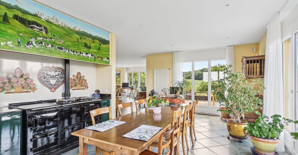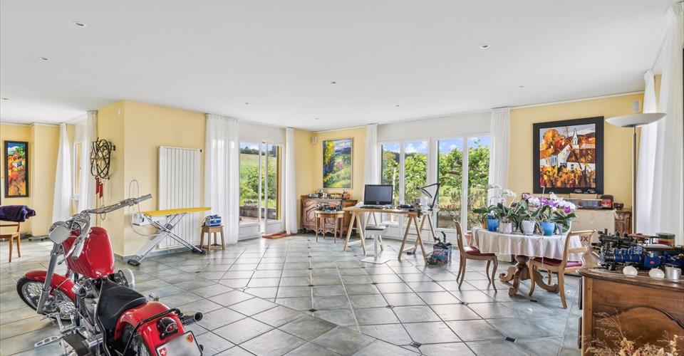 Située dans la commune vaudoise de Cudrefin/Montet, dans le district de la Broye-Vully, cette splendide villa de 6.5 pièces bénéficie d’un emplacement de choix au c-ur d’un environnement champêtre, avec une belle vue dégagée et une généreuse surface de verdure. La partie ouest de la parcelle offre par ailleurs un potentiel constructible intéressant. Proche des commodités, la ville de Cudrefin permet de rejoindre Neuchâtel en 20 minutes de route, Fribourg en 35 minutes et Berne en 40 minutes. Un arrêt de bus se trouve à 7 minutes à pied. Construite en 2001, la villa et ses extérieurs ont été soigneusement entretenus au fil des ans. En 2015, les façades ainsi que les barrières de balcons ont été refaites. En 2023, une pompe à chaleur air-eau ainsi que 21 panneaux solaires photovoltaïques ont été installés. Le sous-sol est composé de trois grandes pièces de stockage, d’un abri antiatomique ainsi que d’un studio indépendant de 45 m² équipé d’une cuisine ouverte et d’une salle de douche. Au rez-de-chaussée se trouve l’entrée principale donnant accès à un spacieux espace séjour-salle à manger de 140 m² avec cuisine ouverte, un réduit et une salle de douche. Baigné de lumière, Le premier étage permet d’accéder à deux chambres avec salle de douche et balcon, ainsi qu’une suite parentale de 30 m² comprenant deux balcons, une salle de bain, un WC séparé et un dressing. Le garage de 52 m² permet le parcage d’au moins deux véhicules et, pour les bricoleurs, l’installation d’un atelier. Six places extérieures situées devant la propriété complètent ce bien d’exception. Une spacieuse terrasse de 140 m², avec accès direct au magnifique jardin de plus de 1’700 m², entoure la maison et offre ainsi la possibilité de partager vos repas et de vous prélasser selon vos envies à l’ombre ou au soleil tout au long de la journée, dans un cadre paisible et relaxant. Ce bien vous intéresse ? Contactez-nous !