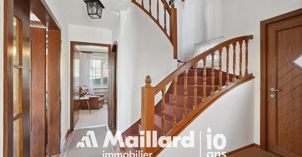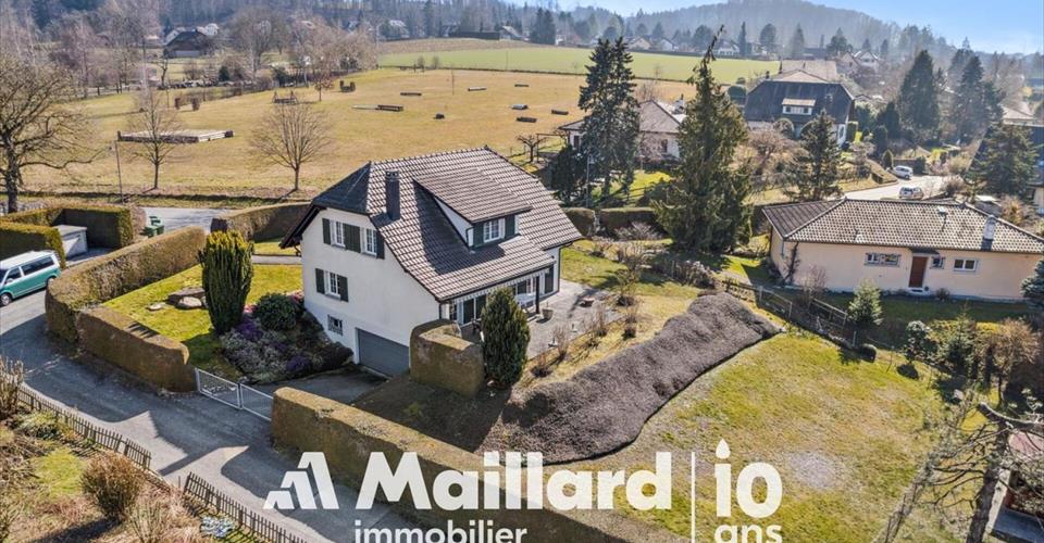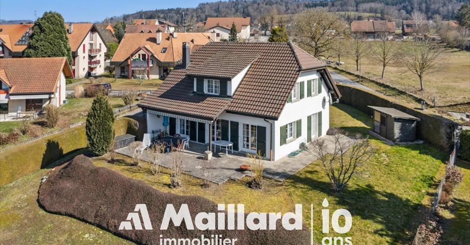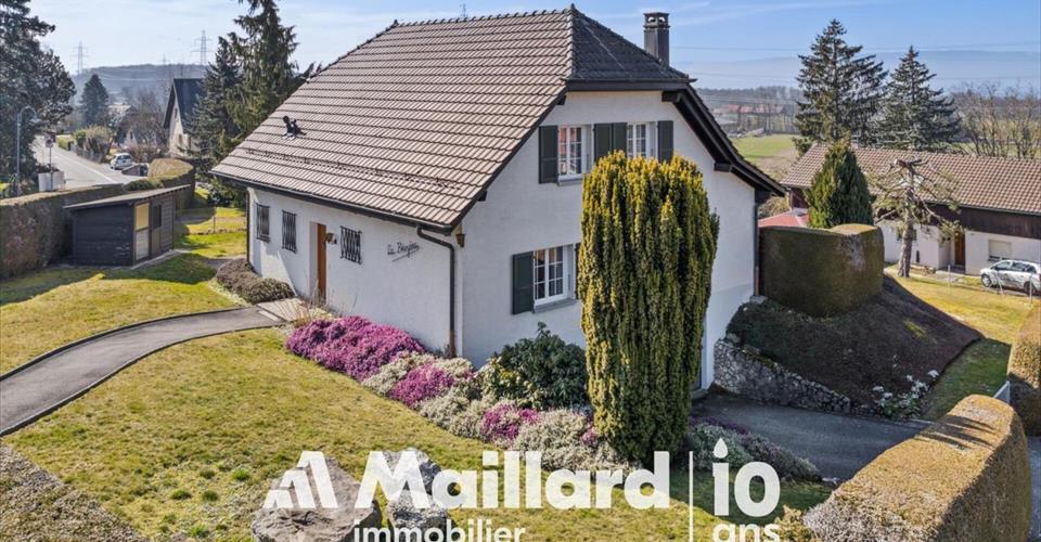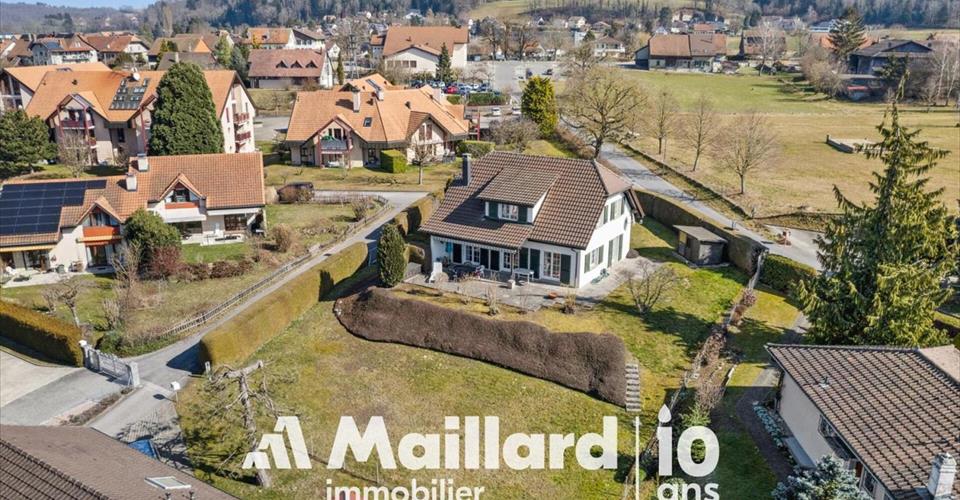 Villa vaudoise Nichée dans un environnement privilégié, cette propriété individuelle coup de coeur allie charme, fonctionnalité et espace. Surface habitable : 180 m² Nombre de pièces : 6.5 Terrain : 1’333 m² Année de construction : 1979 ATOUTS DISTINCTIFS Architecture : Une villa vaudoise avec des espaces de vie lumineux et harmonieux. Localisation : Située dans un quartier résidentiel et calme, offrant un équilibre parfait entre tranquillité et accessibilité. ESPACE DE VIE La maison se déploie sur 3 niveaux, révélant : – Un grand hall d’entrée avec son imposant escalier – Une pièce de vie spacieuse baignée de lumière naturelle et profitant d’une cheminée – Une cuisine fermée pouvant être ouverte sur le séjour – Des chambres spacieuses avec des espaces de rangement – Un garage pour 2 véhicules, des espaces de rangement EXTÉRIEURS ET JARDIN Jardin entièrement clôturé et arboré Terrasse ensoleillée et abritée Possibilités d’aménagements extérieurs multiples tels que piscine ou autres Cette propriété représente bien plus qu’un simple achat immobilier ; c’est l’opportunité de réaliser votre projet de vie, dans un environnement vous facilitant la vie au quotidien. Contact : Thomas Bise