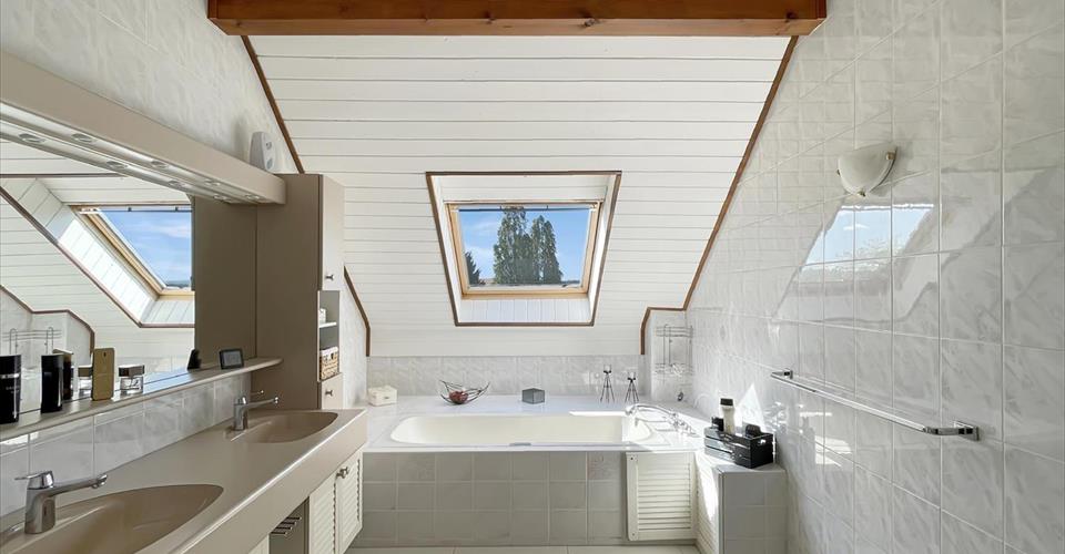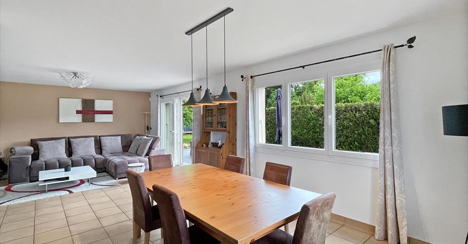 BC IMMO vous présente en exclusivité, une magnifique villa individuelle située dans un cadre bucolique à Chesalles-sur-Moudon (commune de Lucens). Au coeur de la campagne vaudoise, cette villa individuelle offre un cadre de vie paisible et verdoyant. Équipée d’une pompe à chaleur, elle séduit par ses volumes généreux et ses aménagements soignés. Rez-supérieur : Un hall de distribution dessert une salle de douche avec wc ainsi qu’une pièce polyvalente pouvant servir de chambre, bureau ou dressing. La cuisine, moderne et très bien équipée, est dotée d’un agréable coin repas. Le séjour, lumineux et convivial, s’articule autour d’un espace salle à manger ouvert sur le salon, lui-même agrémenté d’une cheminée d’angle. De grandes baies vitrées assurent un accès direct aux terrasses et au jardin. Étage : L’étage accueille une grande salle de bain et quatre chambres. Rez-inférieur : Ce niveau abrite un vaste garage pour trois véhicules, un local technique, une grande buanderie équipée ainsi qu’une cave. Un espace brut, prêt à être aménagé, permet la création d’un studio indépendant ou d’un local commercial selon vos besoins. Extérieurs : Deux terrasses orientées sud et est permettent de profiter pleinement de la lumière et de la tranquillité environnante. Le jardin, joliment arboré, s’étend autour de la maison et offre plusieurs espaces de détente. Cinq places de stationnement extérieures complètent les prestations.