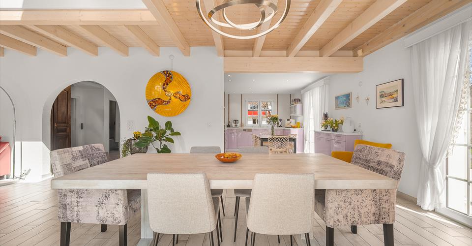Superbe maison familiale style villa vaudoise, construite avec goût et matériaux de qualité, très bien entretenue. Située au coeur d’un quartier résidentiel, offrant le calme et la tranquillité tout en étant proche de toute commodité. Objet rare.