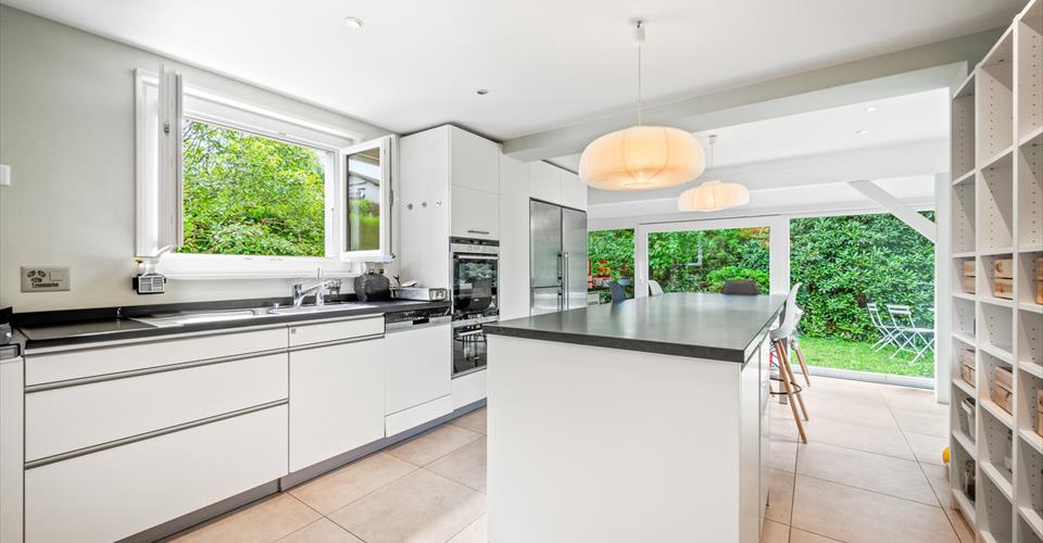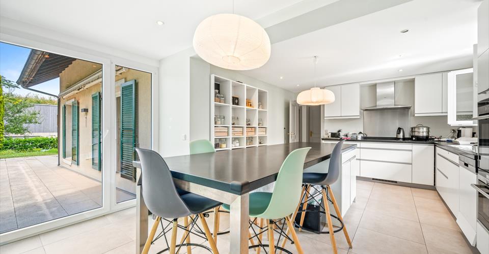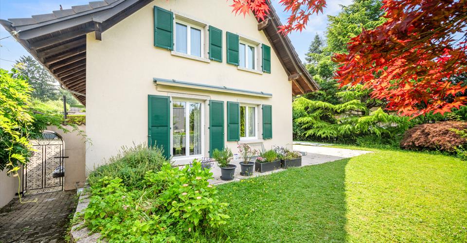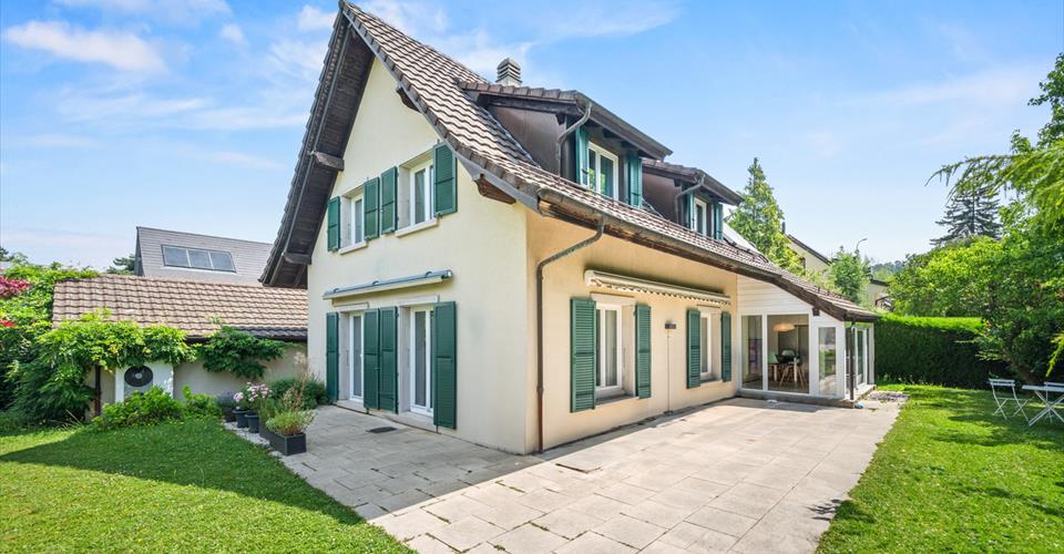 Dans un environnement résidentiel calme et verdoyant, cette villa rénovée avec soin en 2019 offre un cadre de vie privilégié, à deux pas des transports, des commerces et des écoles internationales. Implantée sur une belle parcelle de 1’046 m², la propriété profite d’un jardin arboré, intime et soigneusement entretenu. D’une surface habitable d’environ 200 m², la maison séduit par ses volumes généreux, ses lignes sobres et ses finitions soignées. Elle propose cinq chambres, trois salles de bains, un séjour lumineux ouvert sur l’extérieur et une cuisine conviviale. Les combles aménagés offrent un espace complémentaire, modulable selon les besoins. Le sous-sol dispose d’une grande pièce polyvalente – home cinéma, salle de jeux ou fitness – ainsi que d’une salle d’eau, d’un WC séparé et des locaux techniques. Un garage double couvert et plusieurs places extérieures complètent ce bien rare, pensé pour une vie de famille confortable et sereine, à quelques minutes du centre de Lausanne.
