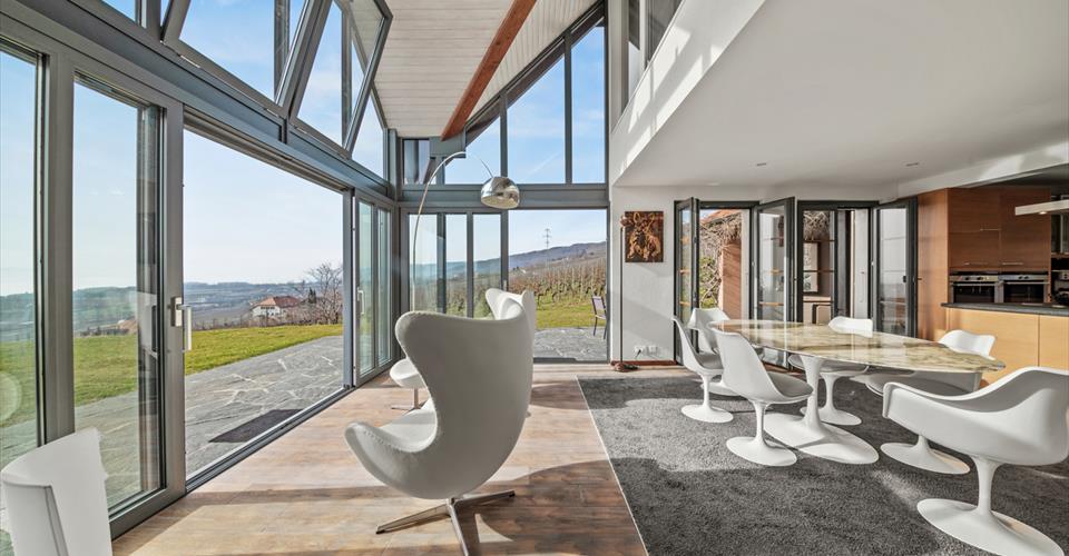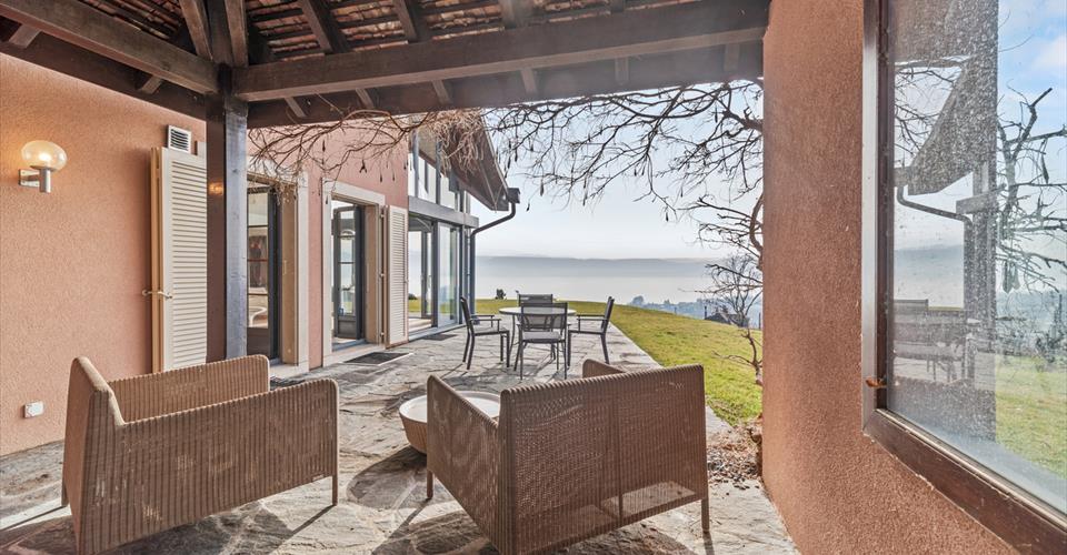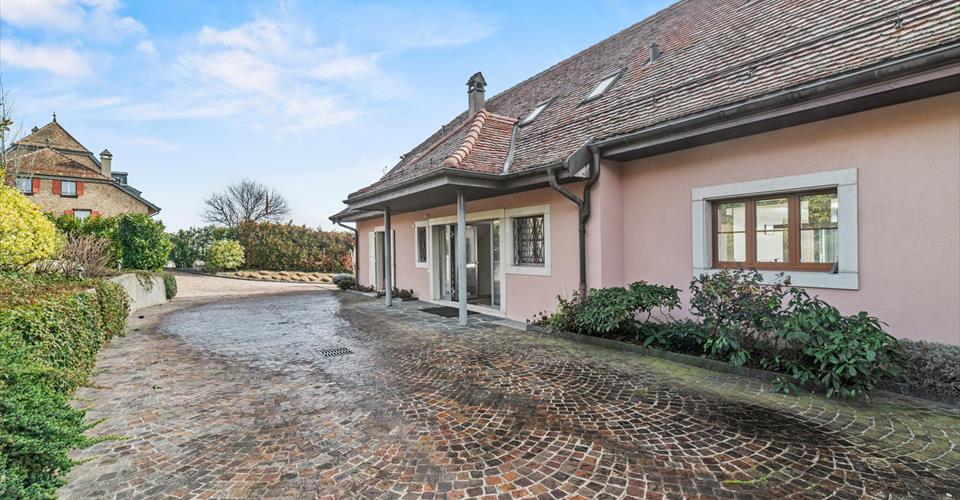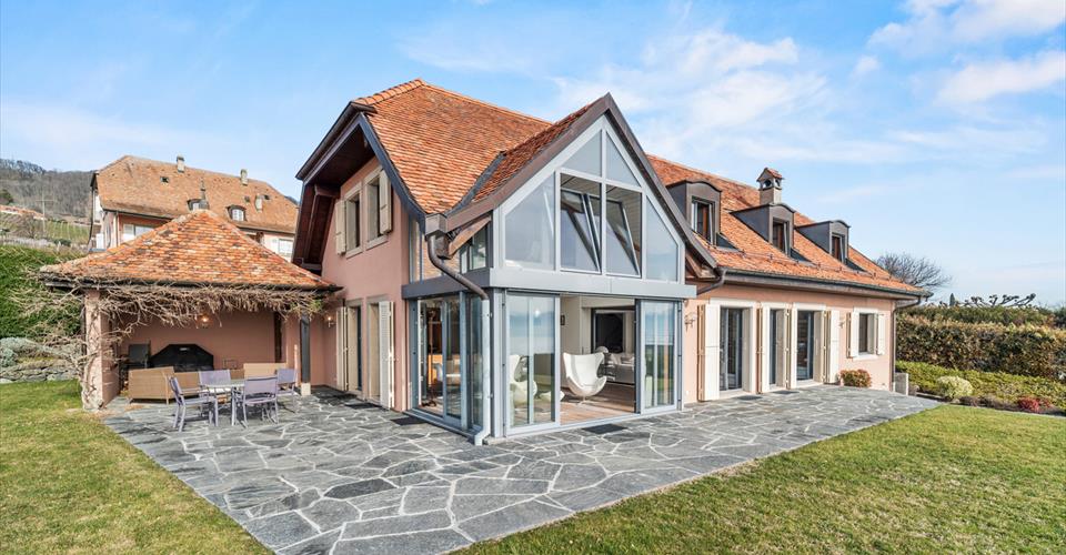 Située sur la commune de Mont-sur-Rolle, cette belle maison jouit d’une situation exceptionnelle: calme, entourée de vignes et avec une vue imprenable sur le lac Léman et le mont Blanc. Dans un environnement privatif avec piscine et jardin, elle offre un cadre de vie paisible au cœur du vignoble de la Côte, à mi-chemin entre Lausanne et l’aéroport de Genève. La propriété entièrement rénovée en 2008 a trés bien été entretenue. Elle s’articule sur deux niveaux et offre 270 m2 de surface habitable. Le rez-de-chaussée est baigné de lumière et accueille les pièces de vie ainsi qu’une chambre avec salle de bain et un bureau. Une jolie cheminée donne une atmosphère chaleureuse au salon et une belle verrière abrite la salle a manger ce qui permet de profiter du jardin en toute saison. Le premier étage reçoit l’espace nuit avec la suite parentale, trois autres chambres et deux salles de bains. Une cave à vin, un espace détente et les pièces techniques se trouvent au sous-sol. La parcelle, au bout d’une impasse, s’étend sur près de 1’800m2 et abrite un beau jardin arboré avec piscine. Un garage semi-enterré pour deux voitures complète ce superbe objet.