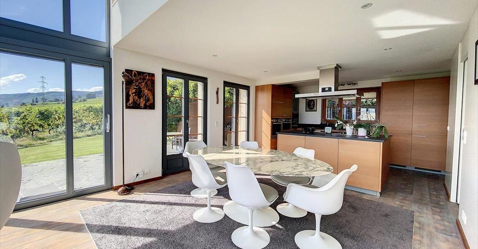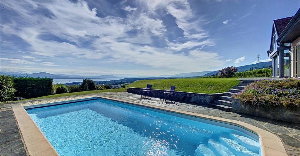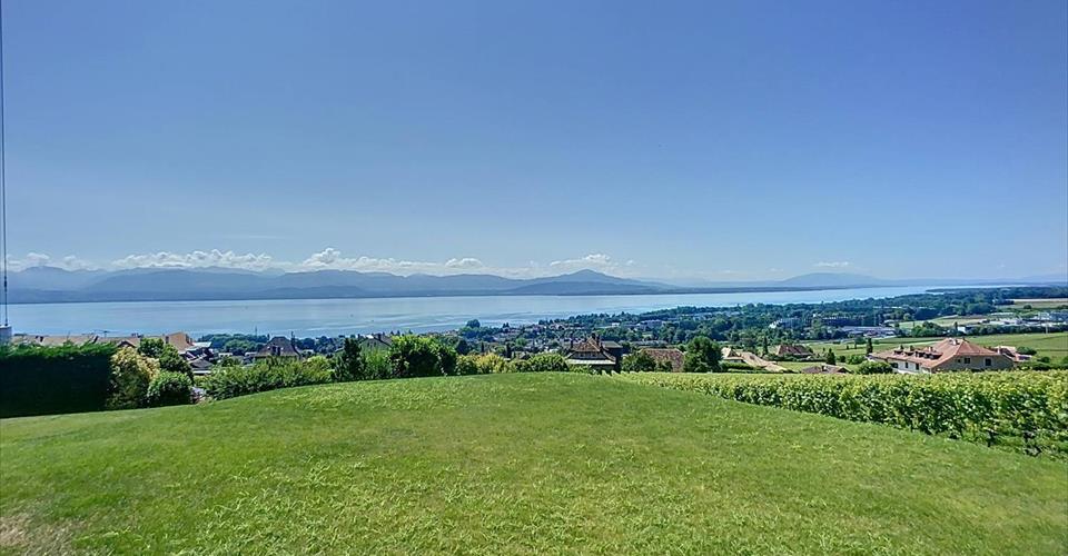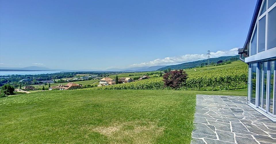 Superbe situation, à l’abri des regards, pour cette propriété cossue sise a Mont-sur-Rolle, jouissant d’un environnement convoité et d’une vue panoramique sur le Léman et les Alpes. Érigée sur une parcelle de près de 1’800 m2, la propriété, construite en 1979, entièrement rénovée et agrandie en 2009, offre une surface utile de 400 m2, répartie sur 3 niveaux, dont un sous-sol aménagé. La maison vous séduira par ses vues, sa luminosité, des volumes ainsi que la qualité de ses prestations. Avec un total de 5 chambres à coucher et d’un bureau, de belles pièces de réception, vous vous y projetterez forcément. La parcelle dispose d’une belle piscine. 2 garages et des places de parc extérieures complètent cet objet rare.