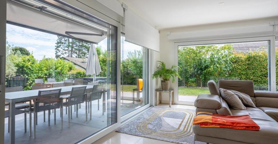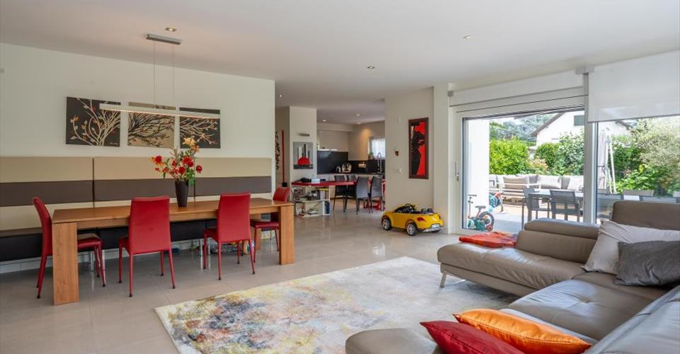 Individuelle familiale située à seulement 10 minutes à pied de la gare et du centre ville de Nyon. Elle possède 5 spacieuses chambres à coucher dont une au rez de chaussée, un grand séjour/cuisine de 70m2 et des matériaux haut de gamme: fenêtres bois/métal triple vitrage, stores électriques, domotique, pompe à chaleur,.. tout est rassemblé pour avoir une qualité de vie idéal.