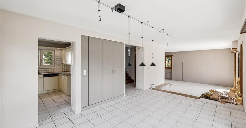 Maison individuelle avec grand volume et espaces généreux. Située dans le quartier résidentiel du village d’Ollon, à deux pas des commerces, construite en 1980 elle nécessite des travaux de rénovation, et de mise à niveau des standards et techniques actuelles. Elle offre un cadre de vie confortable, idéal pour un quotidien serein, tout en restant proche des commodités. L’arrêt de bus ainsi que la gare du village permettent de rejoindre rapidement Aigle et les lignes régionales, conciliant parfaitement vie de village et mobilité. Points forts : Distribution sur 3 niveaux : sous-sol, rez, 1er étage 2 salles d’eau Garage séparé de la maison avec espace rangement Terrasses et places de parc devant la maison