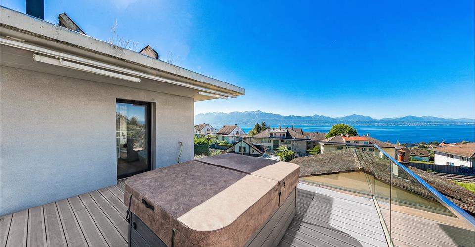 EXCLUSIVITE ROCKWELL PROPERTIES – Située dans l’un des quartiers les plus prisés et verdoyants de Pully, au sein d’un chemin privé garantissant calme et intimité, cette magnifique villa individuelle bénéficie d’un emplacement privilégié. À proximité immédiate des transports publics, des commerces et des établissements scolaires, elle offre un cadre de vie idéal pour une famille en quête de confort et de qualité de vie. Construite en 2016 et entretenue avec un soin remarquable, cette propriété présente environ 200 m² habitables, répartis sur quatre niveaux, alliant beaux volumes, luminosité et finitions de standing. L’ensemble jouit d’une vue sur le lac et d’une atmosphère chaleureuse et élégante. Disposition des espacesSous-sol Une grande pièce polyvalente (salle de jeux, bureau, etc.) Une cave Une buanderie Un local technique Une chambre à coucher avec salle de douche attenante Rez-de-chaussée Un hall d’entrée accueillant Un WC visiteurs Une cuisine ouverte, entièrement équipée Un séjour avec coin repas et salon, ouvert sur la terrasse 1er étage Trois chambres à coucher Une salle de douche Plusieurs espaces de rangement intégrés 2e étage Une suite parentale comprenant chambre, salle de bain, dressings Accès à une terrasse privative avec jacuzzi Annexes Un garage box double Une place de parc extérieure