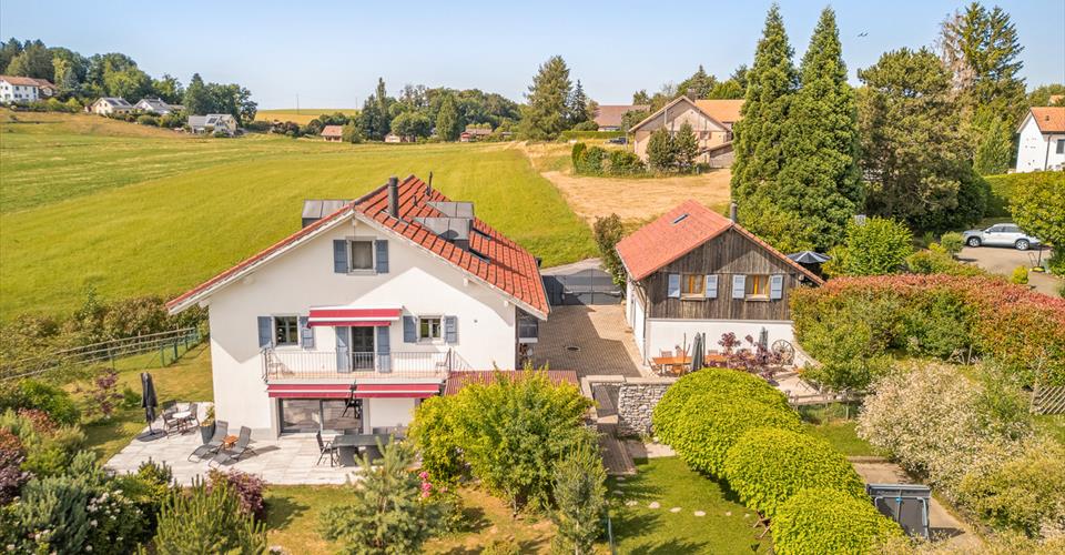 Ce triplex d’exception à Servion est un bien rare et unique situé dans un cadre idyllique, en pleine nature et à l’abri des regards. Il est à noter que ce logement occupe toute la maison principale. Raison pour laquelle, il est présenté sous forme de maison, étant précisé que la maison fait partie d’une PPE de trois logements complément différents et séparés. Dominant le village de Servion, ce triplex occupe toute la maison principale et procure le sentiment d’habiter une maison et non un appartement, il bénéficie d’une exposition plein sud- ouest, garantissant un ensoleillement optimal tout au long de la journée. Le logement proposé à la vente possède une surface généreuse de 265m2 nette, spacieux et lumineux ainsi qu’une grande privacité, il dispose d’un accès direct au jardin privé de 750m2, à une terrasse plein sud de 80m2 dallée ainsi qu’à une cour intérieure de 125m2, ces deux espaces sont à usage privatif. Ses volumes généreux et son aménagement raffiné en font un espace de vie chaleureux et convivial, idéal pour une famille. Ce triplex est composé de 5 chambres, 5 salles de bains ou douche. Il est précisé que l’appartement comprend un 1.5 pces qui possède une entrée séparée mais et directement relié à l’appartement principal. Les aménagements extérieurs sont de grandes qualité, tel que la cour pavée notamment séparée de l’extérieur par un portail électrique, les espaces verts sont magnifiquement arborés et aménagés. Le jardin privatif du triplex et plat et facile d’entretien. Un espace de terrain peut notamment accueillir des animaux ( ânes, poney, chevaux, chiens etc). Il est également précisé qu’un espace complémentaires pour accueillir des animaux peut être loué, il se situe sur la droit de la propriété. Résumé des surfaces: Triplex aux airs de maison de 265m2 net sur 3 niveaux Terrasse plein sud dallée 80m2 dont une partie couverte de 15m2 Balcon 1er étage: 12m2 Espace cour privée pavée avec portail électrique: 125m2 Jardin sud/ouest à usage privatif: 750m2 Une cave voûtée: 20m2 Un atelier: 14m2 Une espace animaux ou loisir vitré sur le séjour: 20m2 Un garage fermé 3 places de parc extérieures
