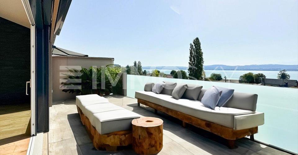 Bénéficiant d’une vue imprenable sur le lac de Morat, dans un quartier calme, au coeur d’une région très porteuse du canton de Vaud, ce bien saura vous séduire par sa typologie et ses finitions de qualité. Erigé en 2016 sur une jolie parcelle d’environ 500 m2, ce bien est dans un état neuf et se répartit sur 3 niveaux. Il offre un confort absolu à l’abri de toutes nuisances, dans un cadre de verdure exclusif. Dans la partie jour, vous découvrirez une vaste et lumineuse pièce de vie. Elle est pourvue d’un séjour et d’un espace dînatoire communiquant avec sa magnifique cuisine et un réduit attenant. Cette dernière est entièrement équipée avec des électroménagers de qualité et des matériaux de standing. Grâce à ses belles baies vitrées, vous bénéficiez d’un accès direct à la belle terrasse et à son grand balcon vue lac afin de profiter des belles journées ensoleillées. Une salle d’eau et une armoire murale complètent agréablement ce niveau. En découvrant la partie inférieure, l’espace nuit se compose de trois spacieuses et lumineuses chambres à coucher, dont une avec un dressing sur mesure vous offrant tout le confort nécessaire au bien-être. Une superbe salle de bains avec une baignoire et une douche ainsi qu’un jardin privatif a été conçue sur ce même étage afin d’agrémenter ces belles chambres. Au réz, vous découvrirez le vaste hall d’entrée qui mène à deux chambre ainsi qu’à une grande buanderie très pratique. Le local technique ainsi que le grand garage à 2 places est accessible directement depuis ce niveau. A noter que ce bien d’exception est pourvu d’un aspirateur central ainsi que d’un purificateur d’eau. Vous l’aurez compris, si vous êtes tenté par un bien conjuguant qualité et bien-être, contactez-moi ! Venez visiter ! Léo Schneuwly