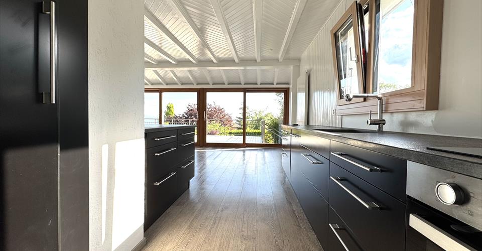 Nichée dans un écrin de verdure, cette magnifique maison individuelle séduit par son atmosphère paisible et son environnement bucolique. Elle bénéficie d’un grand jardin entièrement clôturé, d’une spacieuse terrasse ensoleillée de 38 m² avec vue sur le lac, d’un local de jardinage, ainsi que de plusieurs places de stationnement extérieures. L’intérieur allie charme, confort et fonctionnalité : Un salon lumineux agrémenté d’un poêle Une salle à manger chaleureuse avec cuisine ouverte entièrement équipée Trois chambres et un bureau (ou 4 chambres selon les besoins) Deux salles de bain (1 x avec douche et WC, 1 x avec baignoire et WC) Une grande buanderie, un dressing, une cave à vin et un galetas Le chauffage à pellets assure un confort optimal tout en garantissant une excellente efficacité énergétique. La maison dispose également de panneaux photovoltaïques et d’une entrée de service indépendante, un véritable atout au quotidien. En résumé : Grand jardin clôturé Terrasse de 38 m² avec vue dégagée sur le lac 3 chambres à coucher + 1 bureau (ou 4 chambres) Salon avec poêle Cuisine ouverte équipée et salle à manger 2 salles de bain (douche/WC et baignoire/WC) Grande buanderie Cave à vin, galetas, local de jardinage 2 à 4 places de parking extérieures Chaudière à pellets et panneaux photovoltaïques Charges selon consommation individuelle