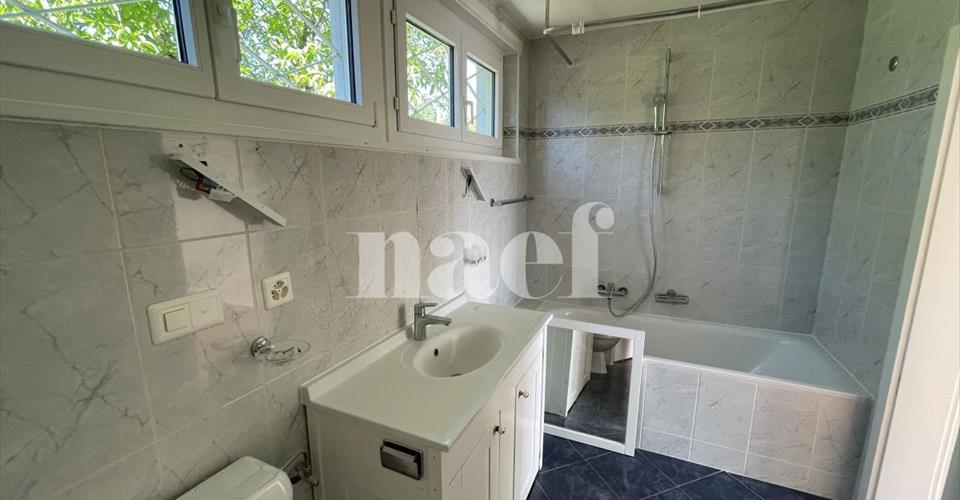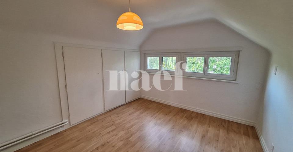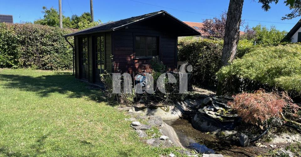Propriété implantée dans un très bel environnement verdoyant proche du centre du village, des petits commerces et de la gare, offrant un grand jardin joliment arboré, agrémenté d’un petit étang et d’un cabanon. La villa se compose comme suit: Au rez-de-chaussée: Hall d’entrée avec armoires, séjour avec cheminée décorative et accès à une grande terrasse et au jardin avec vue sur les Alpes, une cuisine entièrement équipée ouverte sur une grande salle à manger. Au 1er étage: Hall avec armoires, 3 chambres à coucher avec vue sur le lac, dont une avec balcon et deux avec grande terrasse couverte, 1 salle de bains-wc attenante. Dans les combles: 2 chambres à coucher avec armoires, 1 salle de bains-wc et rangements en sous-pente. Au sous-sol: chaufferie (mazout) et buanderie équipée. 1 grande cave attenante au garage Entretien du jardin d’une surface d’env. 1900m2 à la charge du locataire.