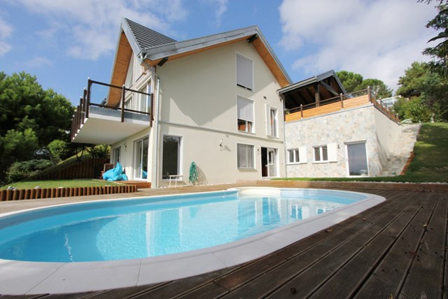 Cette charmante villa de 61/2 pièces, érigée dans un écrin de verdure au coeur de la Côte, surplombant l’arc lémanique, offre une vue imprenable sur le lac Léman, la chaîne des Alpes ainsi que le Mont-blanc. Proche des commodités, Morges, Rolle, Lausanne, aéroport de Genève, des écoles, garderie, commerces, ainsi que du petit train de campagne avec de très bonnes connections pour accéder très rapidement dans toute la Suisse, est un confort de vie. La conception de cette villa, est principalement en bois avec à l’intérieur des rondins et des pierres, ce qui confère un esthétisme rustique et authentique. Des panneaux solaires thermiques sont intégrés sur le toit, prise pour voitures électriques, de grandes fenêtres triples vitrages, ainsi que des velux grands formats en toiture maximisent l’entrée de la lumière naturelle. La pompe à chaleur de haute qualité, diffuse la chaleur par les sols. Construite sur trois étages, le rez supérieur offre un grand séjour avec cheminée avec accès à la terrasse par de grandes baies vitrées, une cuisine américaine agencée, un sellier, une salle à manger, un wc visiteurs avec une vasque en pierre massive, un sas d’entrée. Au rez inférieur il y a trois chambres dont deux communicantes avec une salle de bain, et la 3ème chambre avec sa salle de douche à l’italienne, une grande pièce multi usages, local technique, buanderie. Au 1er étage sous les combles, une suite parentale avec son dressing, sa salle d’eau avec la combinaison d’une douche à l’italienne et d’une baignoire, deux belles vasques en pierre. Toutes les chambres de la villa ont une vue imprenable sur le lac et les Alpes. Les extérieurs sont composés d’un jardin engazonné avec arrosage automatique, arboré et illuminé avec une piscine chauffée, plusieurs terrasses et des parkings, complètent se bien-fonds d’exception. Ses atouts: proches des commodités, économie d’énergie, vue imprenable.