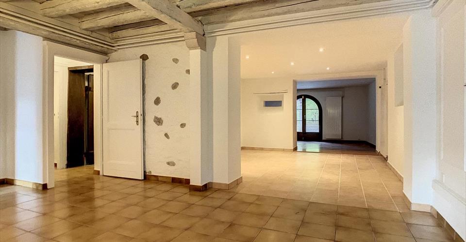 A quelques minutes de Nyon et à l’abri des nuisances, cette jolie maison de village occupe une partie d’un ancien corps de ferme localisé au coeur du village de Trélex, à proximité immédiate du bâtiment de la petite enfance & de l’école (les enfants peuvent s’y rendre à pieds). Les amoureux de vieilles pierres, poutres apparentes et cheminées anciennes seront séduit par le charme de ce logement et des généreuses surfaces de ses pièces. REZ-DE-CHAUSSÉE : – Hall d’entrée avec WC visiteurs – Grande cuisine moderne indépendante de 24 m2 aménagement et équipée – Salle à manger de 14 m2 – Salon “côté Jura” de 27 m2 avec accès à la terrasse dotée d’une piscine couverte – Salon “côté Village” de 34 m2 avec cheminée – Buanderie équipée ÉTAGE : – Grand dégagement – Trois chambres de 15, 22 et 25 m2 avec armoires intégrées – Chambre de 19 m2 avec coin dressing de 5,5 m2 – Salle de bains (rénovée en 2017) – Salle de douche (rénovée en 2015) – Réduit – Terrasse côté Jura accessible depuis 2 chambres COMBLES : – Immense grenier non isolé et non chauffé d’environ 125 m2 EXTÉRIEURS : – Terrasse avec belle piscine chauffée utilisable toute l’année (fermeture type ascenseur). – Terrasse à l’étage avec glycine – 1 Place de parc extérieure devant la porte d’entrée Des places de parking publics sont localisées à quelques pas de la maison. LOYER MENSUEL CHF 5’500.- + CHF 300.- (acomptes frais accessoires : entretien brûleur, taille des haies et de la glycine, consommation d’eau froide et taxes, mise en route et hivernage de la piscine.) TOTAL MENSUEL CHF 5’800.- + charges individuelles selon consommation (mazout et électricité) DISPONIBILITÉ : de suite Remarques : – Chauffage au mazout Chaudière et citernes indépendantes – Boiler électrique indépendant pour l’eau chaude