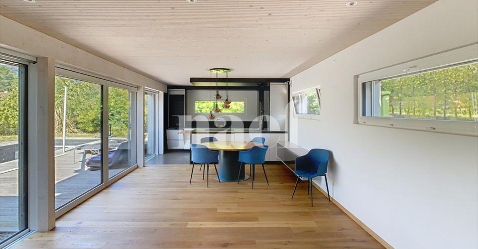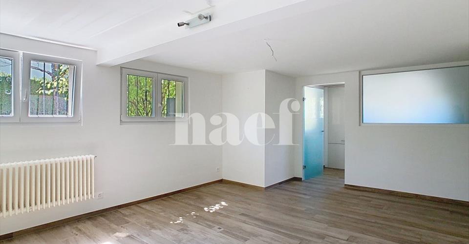 A Vevey, proche du centre-ville, dans un quartier résidentiel, cette maison individuelle profite d’une surface de 235 m2. Construite en 1955 et entièrement rénovée en 2020, cette villa allie le charme de l’ancien et du contemporain sous un même toit! Sur une parcelle de 1000 m2, cette maison de 6.5 pièces est répartie sur deux niveaux de la manière suivante: Au rez-de chaussée, un généreux hall d’entrée, une cuisine entièrement aménagée et équipée ouverte sur le salon / séjour. A cet étage la maison profite d’un studio indépendant avec cuisine aménagée et sanitaires (sans salle de douche), ce studio, jusqu’à présent utilisé comme cabinet, peut acceuillir une activité professionelle ou servir de logement indépendant. A l’étage, on compte trois chambres à coucher, une salle de bains avec toilettes et la chambre à coucher principale avec dressing et salle de douches. A l’extérieur, la maison profite d’une terrasse, d’une piscine chauffée, et d’un vaste jardin joliment arboré. La villa est par ailleurs équipée, de panneaux photovoltaiques, d’un système de domotique et d’une borne de recharge pour voiture électrique. Disponible de suite ou à convenir, n’hésitez pas à nous contacter pour plus d’informations et éventuelle visite. Loyer Frs 6’950.- + charges individuelles.