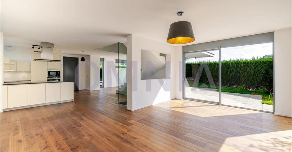 OMNIA Immobilier Genève vous présente cette très belle maison familiale de 270 m2 construite en 2016. Idéalement située sur la commune d’Anières, elle vous séduira par la qualité de son emplacement et de sa construction. On y découvre au niveau principal l’entrée, wc invités, salon, salle à manger avec cuisine américaine équipée, le tout ayant accès à une terrasse et un beau jardin. A l’étage supérieur, on découvre 3 chambres, deux salles de bains, divers dressings et une magnifique terrasse. Au sous-sol, buanderie, caves et salle de sport. En extérieur, deux places de parkings couvertes. La maison est en excellent état et elle est habitable immédiatement.