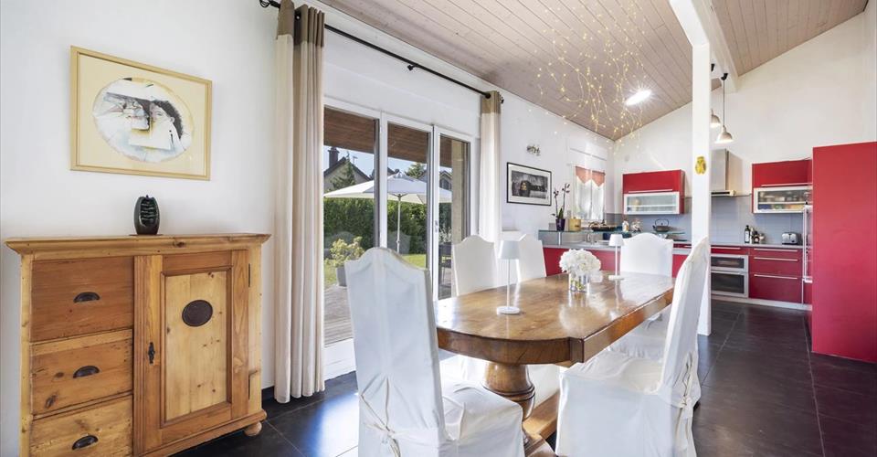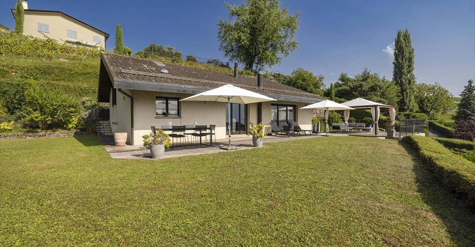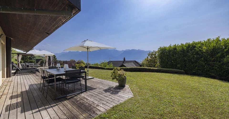 En exclusivité Située dans la partie basse de la commune de Blonay, cette superbe propriété bénéficie d’un emplacement privilégié au coeur d’un charmant quartier résidentiel, à l’écart de toute nuisance sonore. Les extérieurs sont de toute beauté, offrant un vaste jardin-terrasse de plain-pied avec une vue panoramique imprenable sur le lac Léman et les Alpes. Un second espace de détente a été soigneusement aménagé en terrasse avec jacuzzi, idéal pour profiter pleinement du cadre exceptionnel. La maison s’organise actuellement sur deux niveaux habitables. Elle propose 4 chambres à coucher et 2 salles de bains. A noter qu’un potentiel d’agrandissement existe, avec la possibilité d’ajouter un étage complet (un permis de construire avait été accordé aux propriétaires actuels). Une grande cour, avec portail électrique, offre la possibilité de garer de nombreux véhicules.