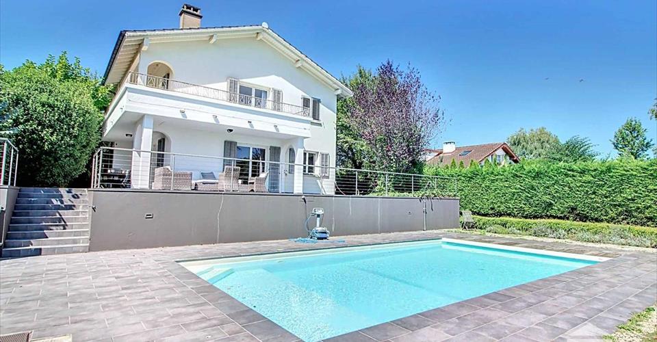 Borex – charmante commune située à quelques minutes de la ville de Nyon et proche de la Genève Internationale. La propriété que nous vous proposons est construite sur une parcelle de 1’470 m² dans le bas du village, dans un quartier résidentiel. Le bien comprend en son rez-de-chaussée, les pièces à vivre, soit un séjour, coin à manger avec cheminée, cuisine ouverte entièrement agencée et équipée, un bureau ainsi que des pièces d’eau. L’étage est destiné aux 4 chambres et salles de bains. Le sous-sol quant à lui propose une chambre/bureau avec douche, 2 salles de jeux, sanitaires cave et locaux techniques/buanderie. Un agréable jardin avec terrasses ainsi qu’une piscine extérieure permet de profiter pleinement des beaux jours. Un box double ainsi que 3 places de parc extérieures complètent cette offre. Proche de toutes commodités que peut offrir la région, n’hésitez pas à nous contacter pour plus d’informations et pour une visite ! *** Impôt foncier : 1.5 ‰ *** A compter du 1er juillet prochain, retrouvez toutes nos annonces exclusivement sur IMMOBILIER.CH, le portail des professionnels romands de l’immobilier.