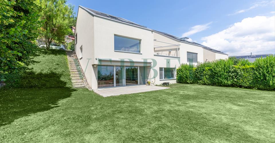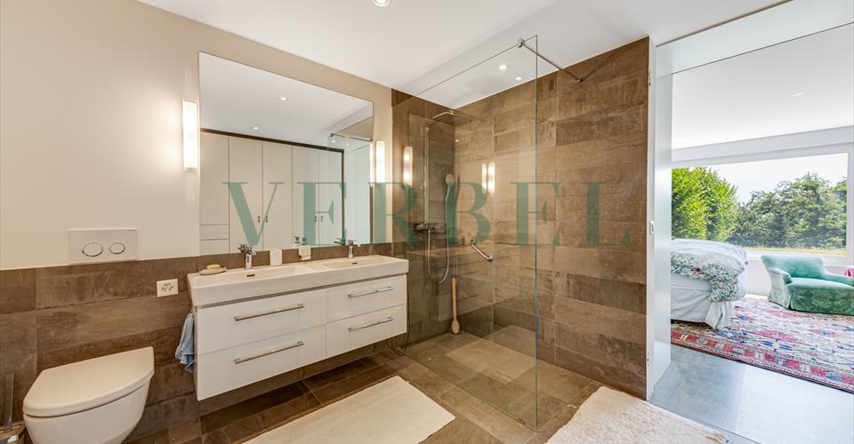 Située sur les hauteurs de Chardonne, cette magnifique villa contemporaine de 6 pièces offre environ 250 m² habitables répartis sur trois niveaux, tous desservis par un ascenseur privatif. Son agencement intérieur, à la fois lumineux, fonctionnel et confortable, a été soigneusement pensé. La propriété jouit d’une vue imprenable et dégagée sur le lac Léman et les Alpes. Le rez-de-chaussée se compose comme suit : – Garage box – Trois places de stationnement extérieures – Accès au jardin – Hall d’entrée – Chambre d’amis / bureau Le niveau inférieur, baigné de lumière et avec vue sur le lac, comprend : – Vaste espace de vie – Cuisine ouverte sur la salle à manger – Grand économat de 16 m² – Réduit avec lavabo et raccordements pour colonne de lavage – WC visiteurs – Grande terrasse de 26 m² Le rez-de-jardin accueille les espaces suivants : – Suite parentale avec dressing et salle de douche – Deux chambres à coucher – Salle de bains – Buanderie équipée – Local technique – Terrasse supplémentaire – Jardin Cette villa lumineuse, parfaitement entretenue et située dans un environnement paisible, est idéale pour une famille en quête d’espace et de qualité de vie. Proche des transports publics, elle permet un accès rapide à la ville de Vevey. Nous restons à votre disposition pour tout renseignement complémentaire ou pour organiser une visite à votre convenance. N’hésitez pas à nous contacter dès maintenant