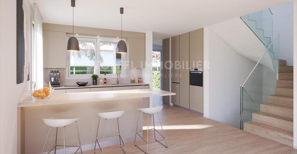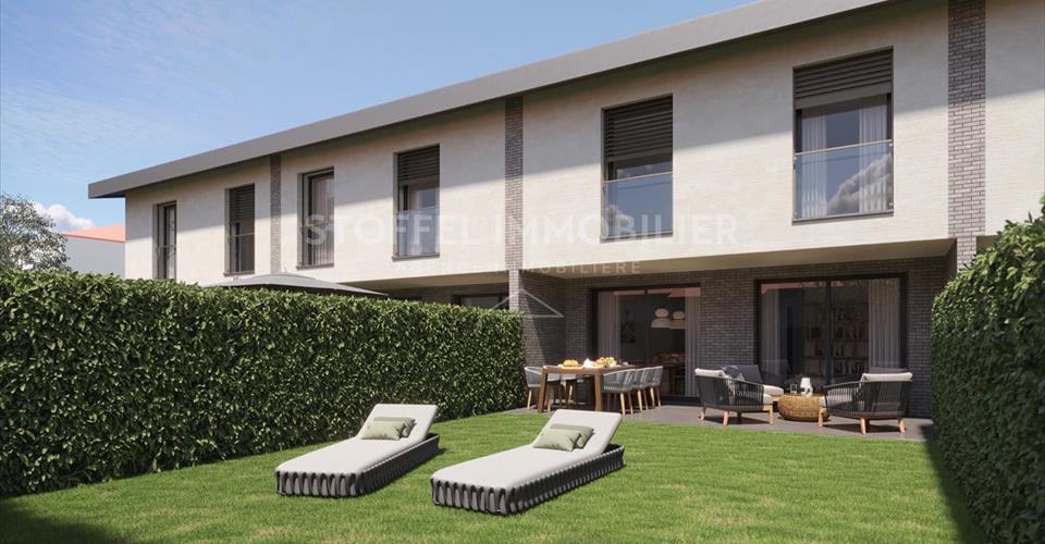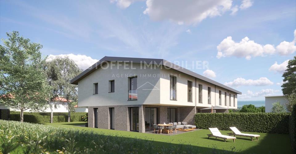 Nichée au coeur d’un quartier résidentiel sur le coteau de Confignon, cette promotion de quatre villas jumelées profite d’un environnement verdoyant et très calme. Les commodités telles que commerces, écoles primaire et secondaire, crèche, centre sportif, transports publics et autoroute de contournement sont proches de cette adresse. Conçues selon les normes THPE (Très Haute Performance Energétique), leur mode de construction intègre une volonté d’écologie souhaitée par les autorités et réalisée par les promoteurs. Ces quatre habitations de 6 pièces chacune offrent une surface habitable allant de 167 m2 à 171 m2 et une surface totale utile de 201 m2 à 219 m2 incluant les sous-sols aménagés privatifs. Chaque villa comprend notamment, une belle cuisine, un spacieux séjour permettant l’aménagement d’un espace salon et salle à manger profitant d’une généreuse luminosité grâce à de grandes baies vitrées. À l’étage, une chambre « Master » avec armoires-dressing et salle de bains attenante, plus trois chambres avec armoires et une salle de bains/douches indépendante (variante possible avec trois chambres au lieu de quatre). Au sous-sol, depuis le parking, une entrée secondaire privative permet d’accéder à la villa. Deux places de parking privées et des places de vélos complètent l’ensemble. Les parcelles soigneusement aménagées varient entre 318 m2 et 527 m2. Chaque villa bénéficie de deux grandes terrasses orientées Est-Sud et Ouest. Découvrez toutes les informations sur le site internet : www.villasranchee12.ch