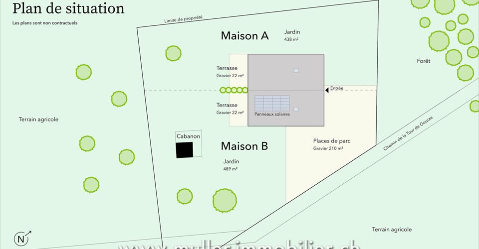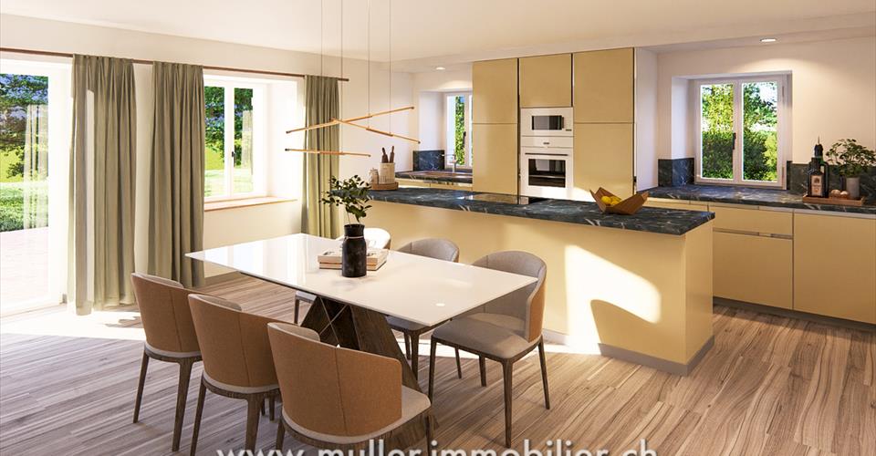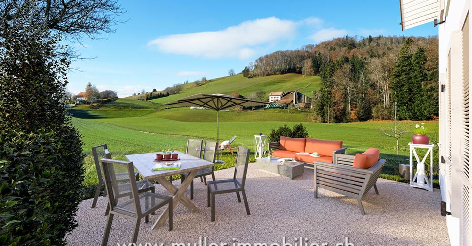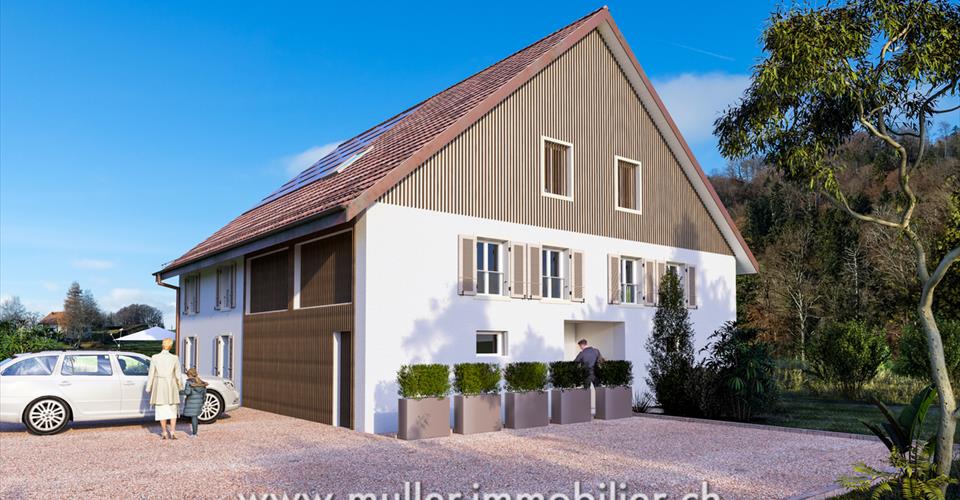 CHANTIER OUVERT ! Nous vous proposons 1 Villa jumelle sur plan de 6 pièces et 147 m2 dans un style “ferme rénovée”, au cÅ“ur d’un écrin de verdure de 630 m², en bordure de forêt et de champs. Cadre de vie exceptionnel : – À deux pas de Forel, – Moins de 10 min du lac, de l’autoroute et de la gare de Puidoux, – Calme absolu, nature, lumière et authenticité. Ce projet unique offre une rare combinaison de charme rural et de confort moderne. Contactez-nous pour découvrir les plans, discuter du projet ou organiser une visite du site CONFORT – Lot A Entouré par de la zone agricole Dégagement sur la campagne et les montagnes Terrasse Grand jardin Local à vélo 2 grands disponibles Pièces : 6 Surface habitable : 147 m2 Surface utile : 195 m2 Salle d’eau : 3 Surface terrain : 630 m2 Chauffage au sol Pompe à chaleur Panneaux solaires Sol, cuisine et sanitaire : choix au grés du preneur Places de parc extérieures Disponibilité : été 2026. ACCÈS À 7 min de l’autoroute À 15 min de Vevey À 20 min de Lausanne REZ-DE-CHAUSSÉE Une jolie cuisine avec salle à manger, un accès à la terrasse et un WC visiteurs. Un local à vélo, une cave et un local technique. 1er NIVEAU Un salon, deux belles chambres, un WC et une salle de douche. COMBLES Deux grands disponibles de 20 et 25 m2. AMÉNAGEMENTS EXTÉRIEURS Une belle terrasse de 20 m2 orientée sud-ouest, un grand jardin et des places de parc.