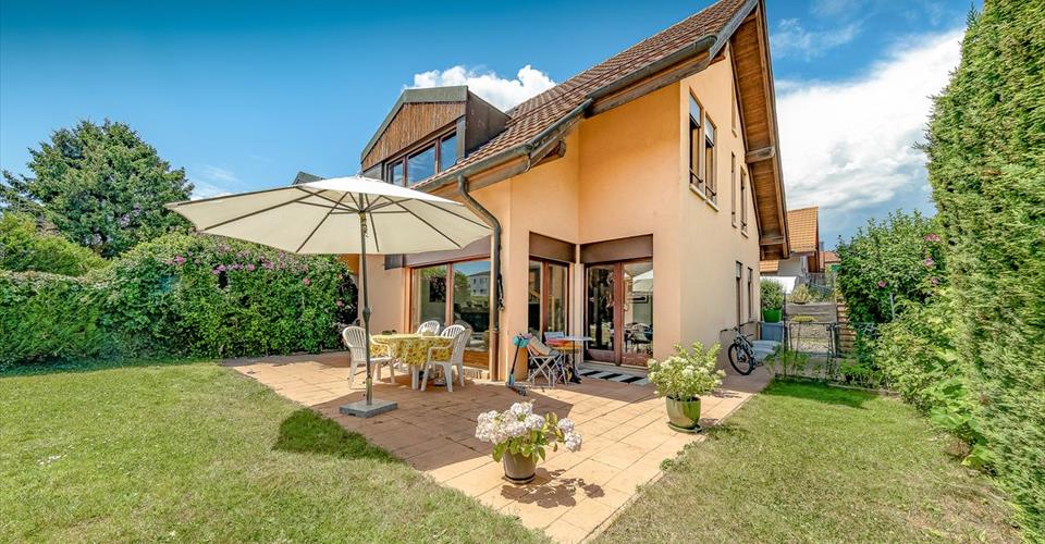 “Magnifique maison jumelée à vendre à Gland! Située dans un quartier résidentiel calme et verdoyant, cette charmante maison jumelle de 6 pièces offre un cadre de vie idéal pour une famille. Avec une surface habitable de 165 m² et un terrain de 400 m², elle séduit par ses beaux volumes et son agencement fonctionnel. Construite en 1991 et entièrement rénovée en 2013, elle marie avec élégance le charme de l’ancien et le confort moderne. Caractéristiques clés: 3 chambres spacieuses, dont une suite parentale avec salle de bains attenante et dressing Combles aménagés, pouvant faire office de 4? chambres, bureau, chambre d’amis ou espace détente (cinéma, lecture..) Sous-sol polyvalent, idéal pour une salle de sport, un atelier, un espace de télétravail ou de loisirs Garage fermé pour une voiture, complété par deux places de stationnement extérieures Chauffage au gaz, garantissant un confort optimal toute l’année Idéal pour une famille mais aussi pour de l’investissement, car le bien est actuellement loué pour environ Fr. 4’600.- par mois Charges mensuelles: environ Fr. 250.-/mois. (chauffage, impôts, divers frais) Emplacement et commodités : La maison bénéficie d’un emplacement privilégié, à quelques minutes à pied de toutes les commodités : Écoles de qualité à proximité : Établissement primaire de Gland (Perrerets), Collège de Mauverney, École secondaire de Grand-Champ Commerces de quartier accessibles à pied : épiceries, magasins durables (épicerie zéro déchet), services de proximité Transports en commun à deux pas : arrêt de bus menant rapidement au centre-ville, à la gare CFF de Gland et aux communes voisines Accès autoroutier rapide (A1), idéal pour rejoindre Genève ou Lausanne en voiture Environnement naturel privilégié, avec les sentiers de promenade “”Entre vignes et vergers”” à proximité immédiate ——————————-Charming Semi-Detached Family Home for Sale in GlandDiscover this beautifully renovated 6-room semi-detached home, ideally located in a peaceful residential area of Gland. With 180 m² of bright, spacious living space and a 400 m² private garden, this property offers the perfect blend of comfort, character, and convenience-ideal for families.Prime Location:Set in a green and tranquil neighborhood, this home is just a short walk from top-rated schools such as: Établissement primaire de Gland (Perrerets) Collège de Mauverney Grand-Champ Secondary School Everything you need is within reach: Local grocery stores and zero-waste shops Public transport just steps away (easy access to Gland train station and nearby towns) Fast access to the A1 motorway, connecting you quickly to Lausanne and Geneva-perfect for commuters A Nature Lover’s Paradise:Enjoy the scenic walking trails of “”Entre vignes et vergers”” (Between Vineyards and Orchards), located just around the corner-ideal for peaceful walks and outdoor activities in a stunning countryside setting.”
