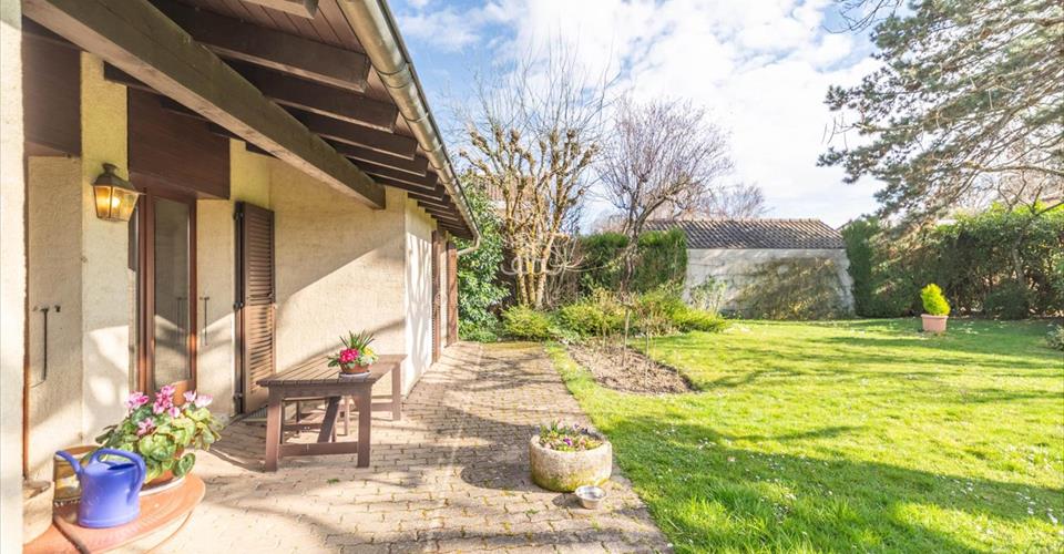 Jouan – de Rham vous présente cette charmante maison provençale située dans un petit hameau paisible au coeur de Gy. Bâtie sur une parcelle de 1’177 m2 en 1980, cette jolie maison bénéficie d’un emplacement idyllique. Cette maison de plain-pied possède une surface habitable de 160 m2 distribuée de manière optimale. Sa grande entrée avec WC invités donne vers une jolie cuisine parfaitement équipée. La chaleureuse pièce de vie avec cheminée est lumineuse et offre de spacieux volumes. Côté nuit, ce sont 3 chambres et deux salles de bain avec rangements qui seront idéales pour accueillir une famille. Le sous-sol est composé d’une chambre, d’un cellier, d’une buanderie, d’un réduit, de la chaufferie ainsi que de la citerne à mazout. Enfin, un joli jardin arborisé ainsi qu’un double garage viennent agrémenter cette jolie maison de campagne.
