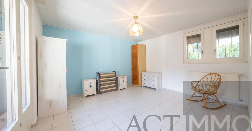Dans un quartier de villas et à deux pas de toutes les commodités, nous avons le plaisir de vous présenter cette maison dotée d’un jardin de belle taille et d’un volume très intéressant. C’est particulièrement sa situation qui vous séduira. En effet, celle-ci conjugue un accès rapide et aisé tant aux voies autoroutières qu’aux transports publics avec la possibilité de se retrouver en quelques minutes au milieu des champs et de la verdure. Également, écoles et commerces sont tous accessibles à pied. Construite en 1975, cette demeure ne présente aucun défaut structurel visible ni traces d’humidité. Les pièces à vivre sont de plain-pied avec un grand salon-salle à manger pourvu d’une agréable cheminée, une cuisine habitable, deux chambres à coucher de belle taille, une chambre parentale avec balcon et salle de bains-WC attenante plus une salle de douche-WC. L’accès à la terrasse et au jardin se fait par le salon et la cuisine. Une quatrième chambre se trouve dans la partie hors-sol de l’étage inférieur. À ce même étage semi-enterré on trouve encore une grande buanderie, une pièce polyvalente, une chaufferie et un abri PC pouvant servir de cave et cellier. Un grand jardin à replanter entoure la maison sur trois côtés et une terrasse invite à de doux moments de détente. Un double box avec porte automatique et plusieurs places de parking extérieures complètent ce bien. Contactez-nous sans tarder pour organiser une visite!