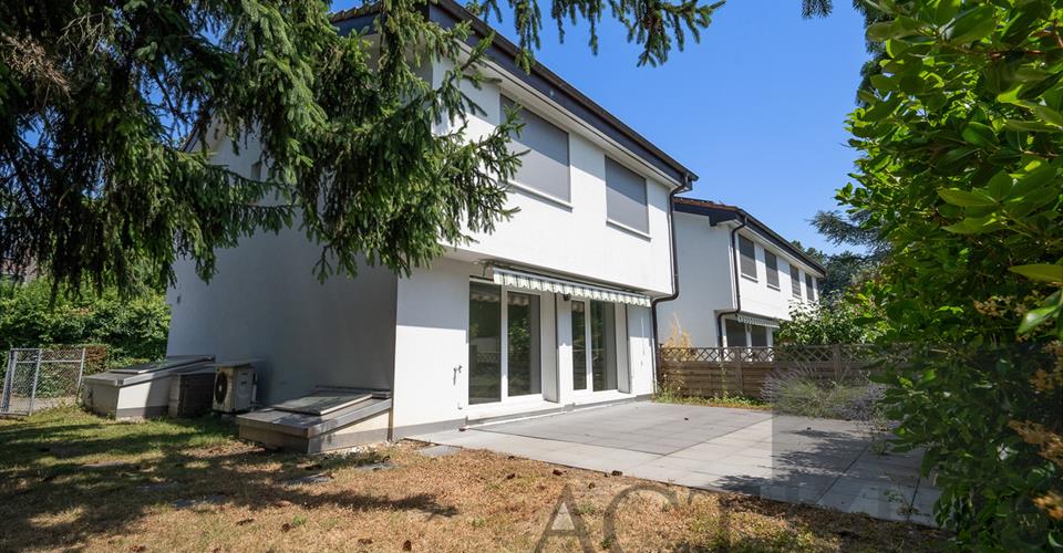 Dans un quartier résidentiel de Thônex, à Genève, cette villa contemporaine située dans un environnement verdoyant et résidentiel, offre un cadre idéal pour les familles et les amoureux de la nature. D’une surface habitable d’environ 160 m2, ses espaces de vie confortables et fonctionnel, un jardin exposé plein sud, elle vous permettra de vous ressourcer et de bénéficier d’un calme absolu au quotidien. Proche de toutes les commodités, des écoles primaires et secondaires, vous aurez aussi à proximité des pistes cyclables pour rejoindre le centre-ville ou la gare du CEVA de Chêne-Bourg ou vous évader dans la campagne genevoise. La villa compte 6 pièces avec un rez-de-chaussée comprenant un hall d’entrée, une cuisine ouverte, équipée et agencée donnant sur un vaste salon d’environ 38 m2 avec un accès sur la terrasse orientée plein sud ainsi qu’un WC visiteurs. Le 1er étage est composé de trois chambres à coucher dont la chambre parentale avec sa salle d’eau privative et un mini-dressing ainsi qu’une 2ème salle d’eau. Le sous-sol, se compose d’une grande pièce polyvalente avec un puit de lumière offrant une luminosité rare pour un sous-sol, une salle de douche complète, une buanderie, une cave et un local technique. Un garage pour une voiture et un couvert à voiture, une dépendance de 18 m2 équipée et agencée ainsi que deux places visiteurs complètent ce bien immobilier. À découvrir sans tarder.