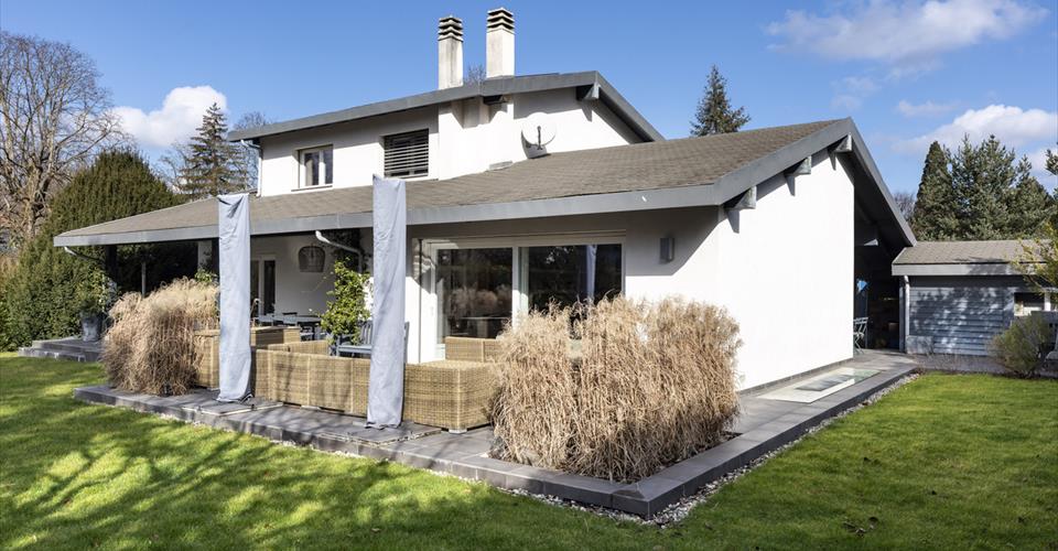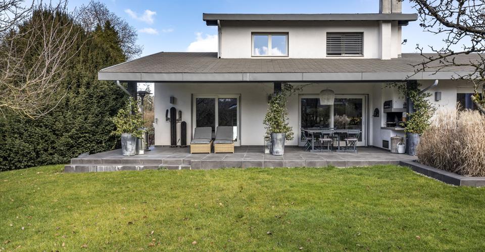 Dès l’entrée, vous serez séduit par un élégant parquet qui recouvre les sols du rez au 1er étage, en passant par les escaliers. Des prestations de qualité témoignent de la qualité de la rénovation. L’entrée avec vestiaire intégré mène à la grande cuisine parfaitement équipée, séparée par une verrière métal/verre. Cette cuisine allie convivialité et fonctionnalité avec un accès direct sur la belle terrasse qui entoure la maison. L’espace de vie comprend le séjour et la salle-à -manger, dotés d’une cheminée et sublimés par un plafond cathédrale. De larges baies vitrées baignent la pièce de lumière naturelle et permettent un accès direct à la terrasse et au jardin. Le rez offre également la chambre principale avec son dressing et une grande salle-de-douches complète. L’étage comprend deux chambres en suite avec dressing et salle-de-douches ou bains. Le sous-sol aménagé propose de multiples possibilités : il se compose d’une chambre d’appoint avec dressing et salle-de-douches, parfait pour une chambre d’invités. Le local technique, la buanderie et une grande salle-de-jeux lumineuse complètent ce niveau, ainsi qu’une pièce bien-être avec salle-de-douches, massage et jacuzzi. Cette élégante maison, confortable et parfaitement entretenue est idéale pour une famille. Les espaces extérieurs soigneusement aménagés en font une propriété rare et exclusive.