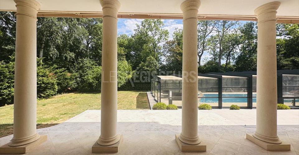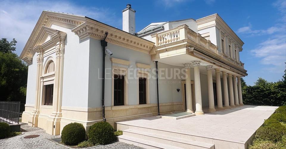Situé dans un quartier résidentiel de la commune de Vandoeuvres, à quelques minutes du centre-ville de Genève, cette demeure avec 540 m² habitables (779 m² utiles) se dresse sur une parcelle de 2’531 m². Edifiée en 2003, elle séduit par son architecture néoclassique, ses colonnades élégantes, ses terrasses en pierre naturelle et son exposition sud-est garantissant en ensoleillement optimal. À l’intérieur, des matériaux nobles : parquet marqueté, boiseries en chêne massif, marbre veiné, cheminée monumentale, plafonds à poutres apparentes et lustre en cristal. La cuisine sur mesure avec un îlot central s’ouvre sur une salle à manger lumineuse et une grande terrasse. La maison compte actuellement 4 chambres, dont une suite parentale avec dressing et salle de bains. Cinq salles de bains au total. Le sous-sol aménagé comprend un espace bien-être avec sauna, vestiaire, douches, deux grandes pièces polyvalentes, ainsi qu’une chambre d’invités. À l’extérieur : piscine en mosaïque de 12 x 6 m ( avec rideau électrique), accessible toute l’année via un passage souterrain, jardin paysager et pavillon en annexe. Garage souterrain pouvant accueillir 4 voitures avec une plaque tournante. Un box fermé et une place extérieure supplémentaire pour un total de 6 véhicules. Le système de chauffage à été mis à jour en 2022 avec une pompe à chaleur. Toutes les fenêtres de la demeure ont des stores électriques, y compris les vélux. Il convient de préciser que : Un projet d’aménagement compris dans le prix est envisageable pour ajouter une cinquième chambre avec salle d’eau attenante et de créer une nouvelle cuisine ouverte sur le séjour, selon les souhaits de l’acquéreur ( sous réserve d’acceptation du projet final).