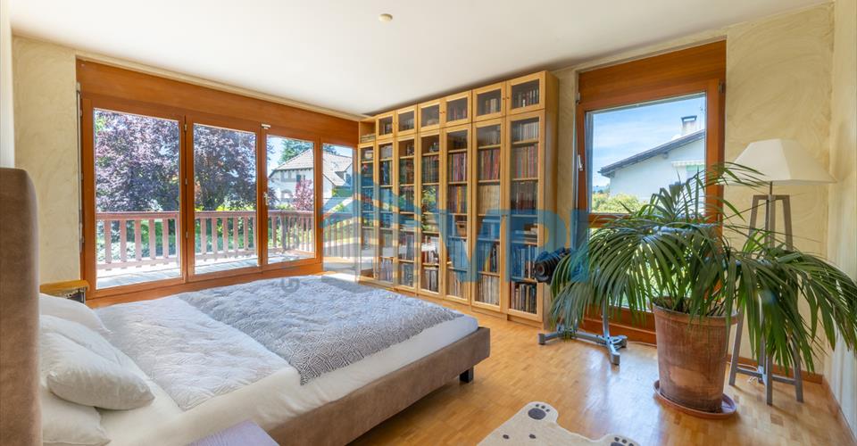 VPI Courtage SA est ravie de vous présenter cette belle maison d’architecte, idéalement située au cœur de Vessy, conçue pour offrir un confort optimal à une grande famille. La maison se dispose de la manière suivante : Au rez-de-chaussée, un vaste espace de vie accueille un salon lumineux ainsi qu’une salle à manger conviviale, ouverts sur l’extérieur. La cuisine, entièrement équipée, complète ce niveau. Au premier étage, trois chambres dont deux avec balcon offrent un cadre de vie agréable et intime. Ce niveau comprend également deux belles salles de bains. Les combles abritent une grande pièce de 42 m² avec une hauteur sous faîtage de 1,94 m, idéale pour un bureau ou un espace de loisirs. Le sous-sol dispose d’une salle de jeux de 38,88 m² avec une entrée indépendante, ainsi qu’une buanderie et une cave.