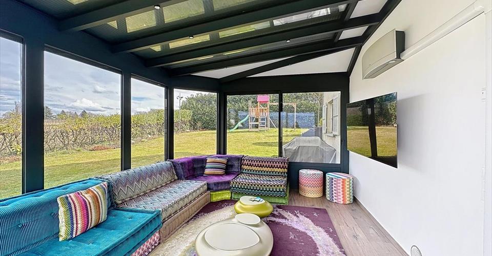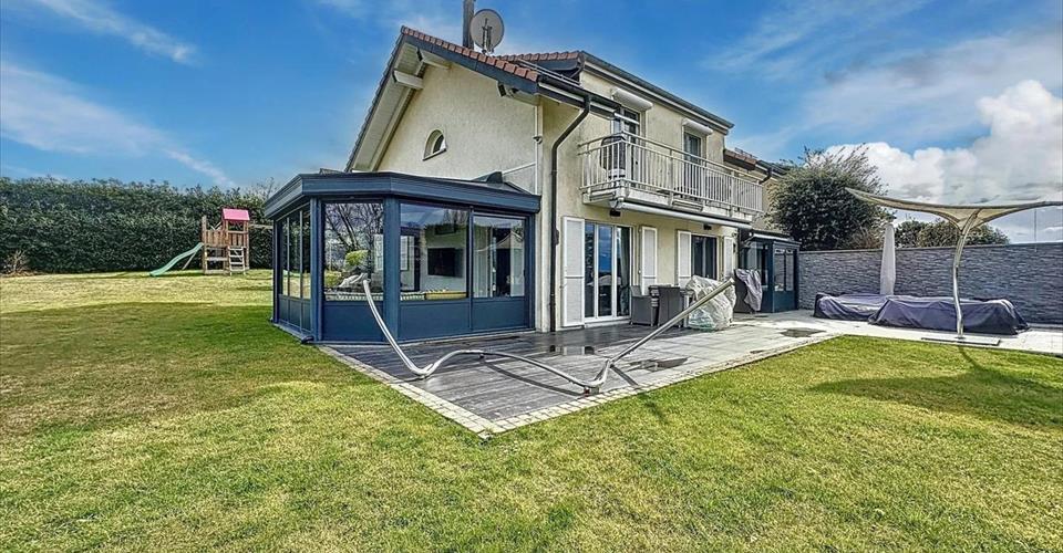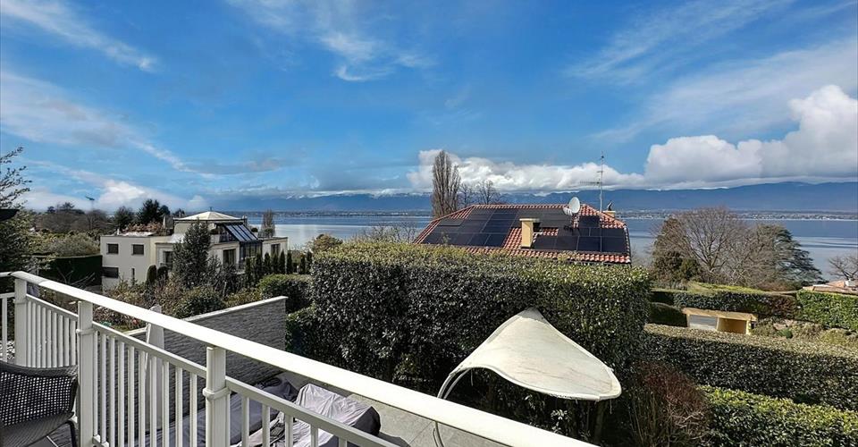 Cette villa située à Anières, jouit d’un emplacement privilégié avec une magnifique vue sur le lac et la campagne environnante. Conçue avec des matériaux de luxe elle offre un confort de vie et une élégance rare. Elle se compose de la manière suivante : Rez-de-chaussée : Hall d’entrée avec placards intégrés, toilettes visiteurs, salon/salle à manger spacieux avec cheminée donnant accès à une véranda lumineuse utilisée comme salon TV, 2ème petit salon avec piano, cuisine habitable entièrement équipée. Le rez-de-chaussée donne accès à une agréable terrasse et au jardin avec vue lac. Premier étage : Chambre à coucher principale avec dressing et salle de bains complète attenants donnant accès à un balcon avec vue exceptionnelle sur le lac, chambre enfant, 1 salle de bains supplémentaire (Possibilité de créer 3 chambres à coucher en cas de besoin). Sous-sol : Vaste pièce polyvalente idéale pour une salle de jeux, une salle de sport ou un espace de détente Chambre à coucher pour invités, salle de douche avec WC, salon TV, chaufferie/buanderie équipée. Les charges sont individuelles. Location non meublé : CHF 7’300.- + charges individuelles