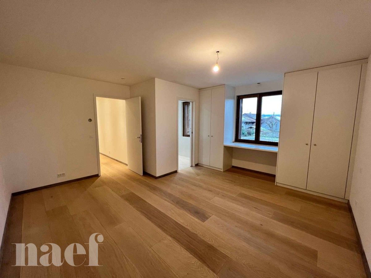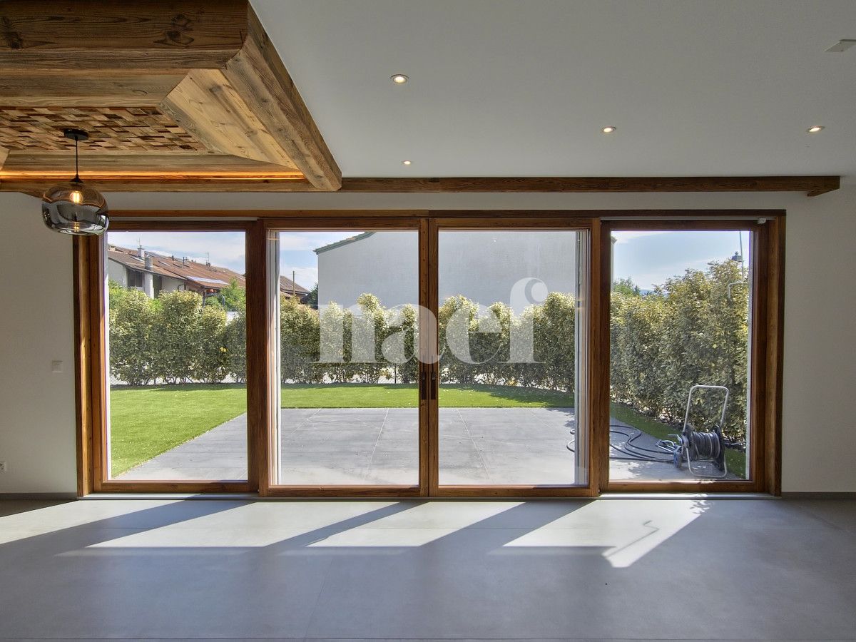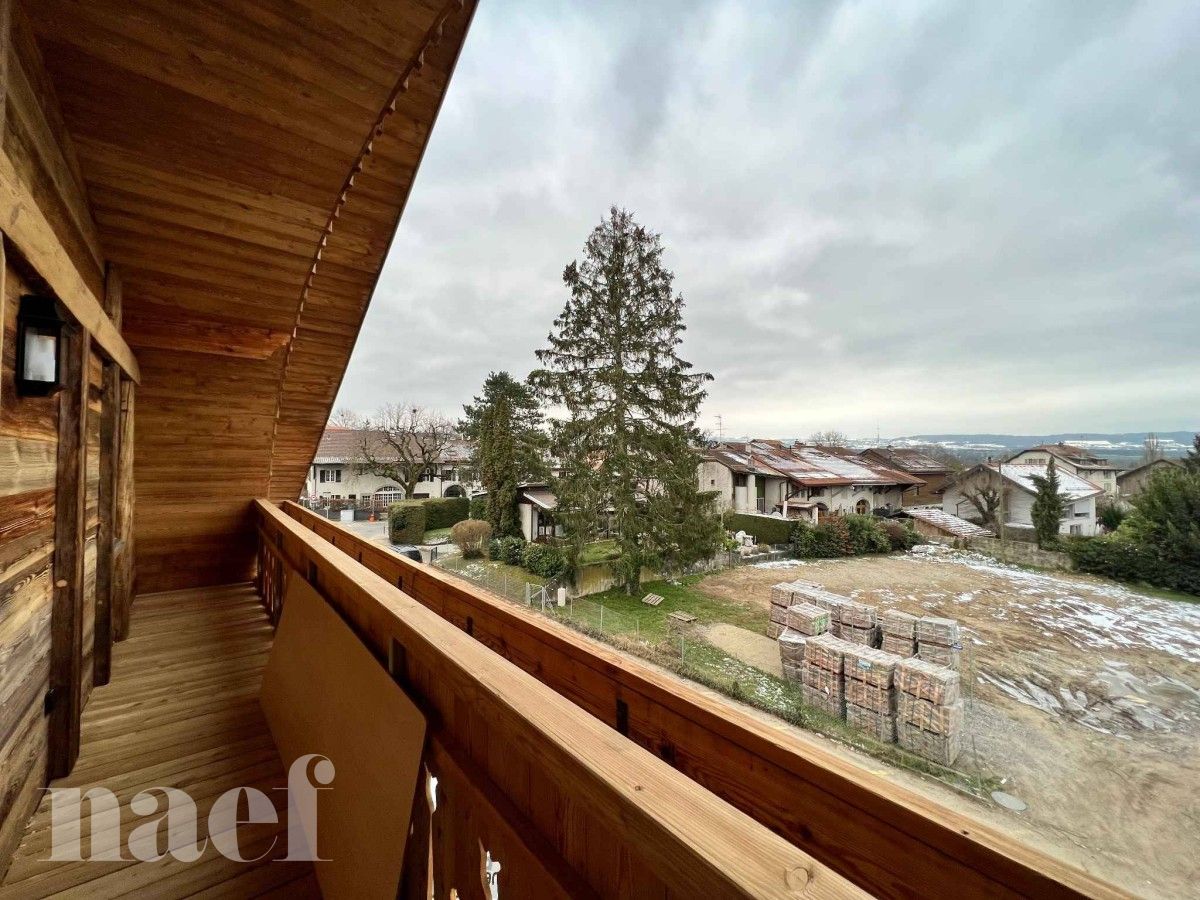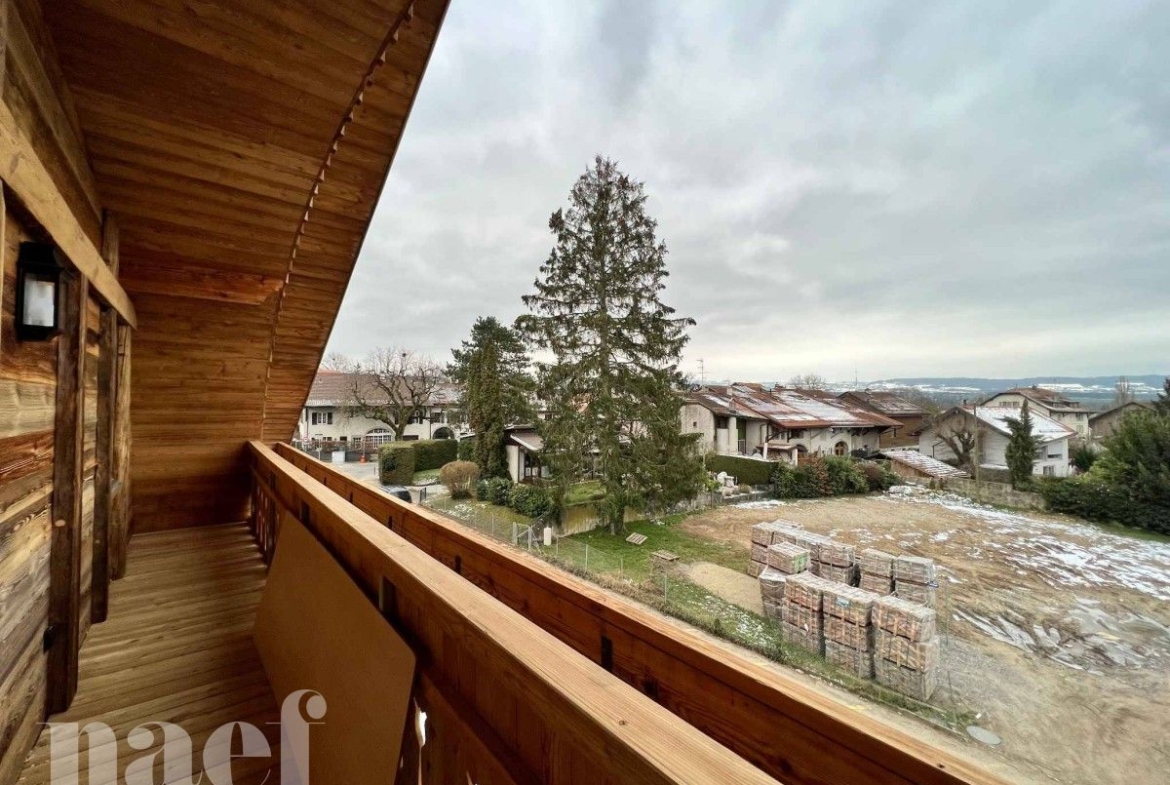 Située au cœur de la campagne genevoise, cette propriété allie charme et modernité avec une architecture inspirée du chalet d’alpage. Le rez-de-chaussée présente des murs en crépi à la chaux, tandis que les étages supérieurs sont habillés de bois réutilisé. Un balcon spacieux et une terrasse plein sud permettent de profiter pleinement de l’environnement naturel.