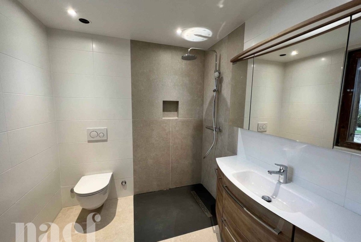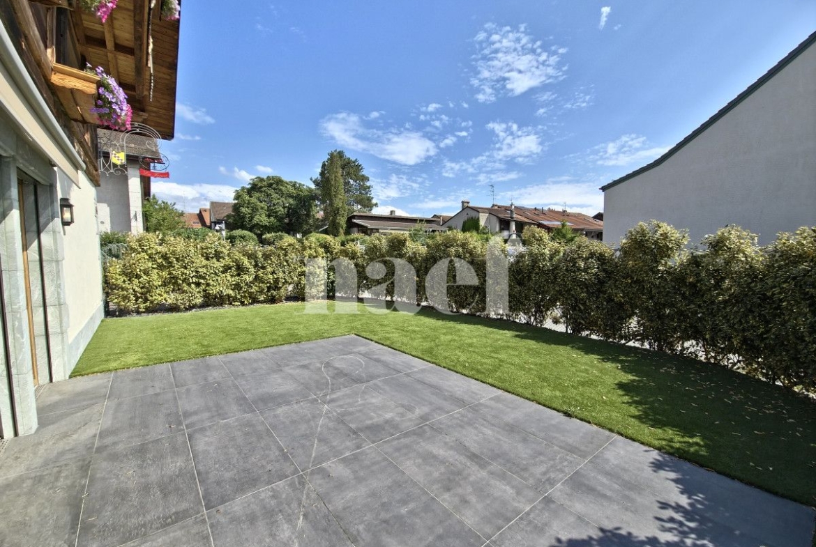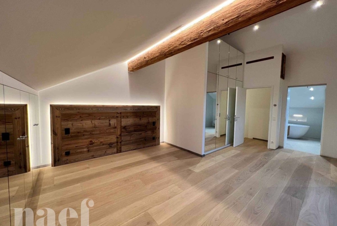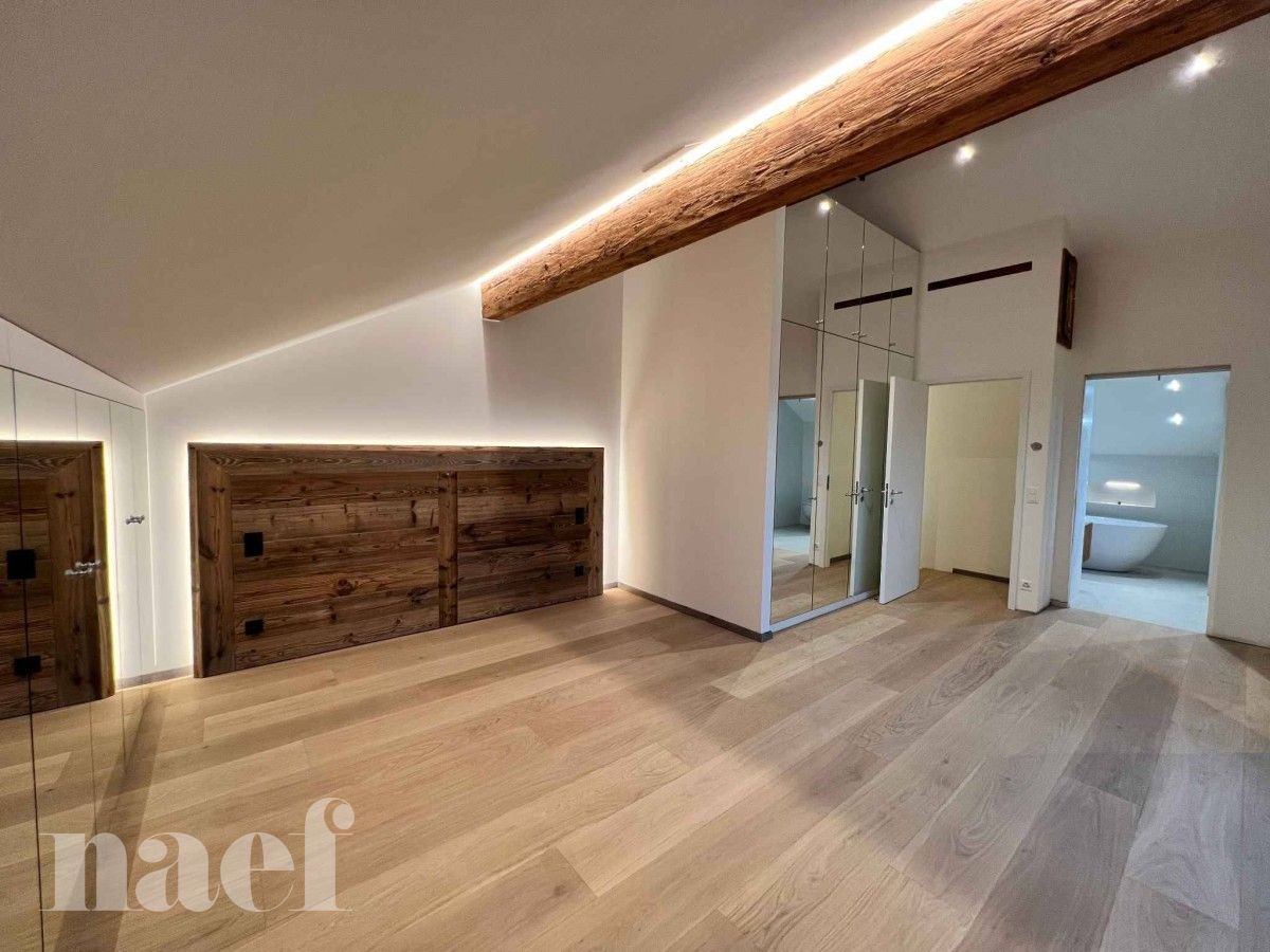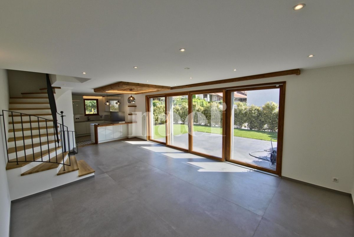 Située au cœur de la campagne genevoise, cette propriété allie charme et modernité avec une architecture inspirée du chalet d’alpage. Le rez-de-chaussée présente des murs en crépi à la chaux, tandis que les étages supérieurs sont habillés de bois réutilisé. Un balcon spacieux et une terrasse plein sud permettent de profiter pleinement de l’environnement naturel.