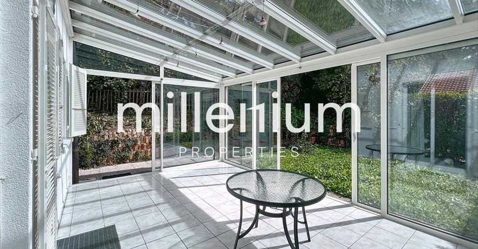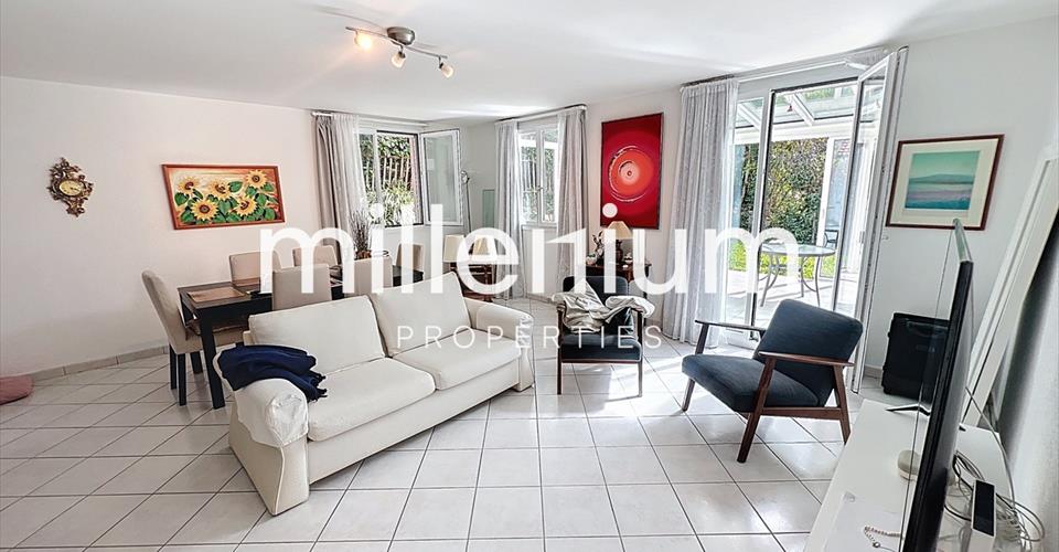 Agence : Millenium Properties SA Réf : KM 2209 Située dans la commune prisée de Bellevue, dans un quartier résidentiel calme et verdoyant, cette maison jumelée séduit par son confort, sa luminosité et sa localisation idéale. À deux pas des transports, des écoles et des commerces, elle offre un environnement parfait pour une famille souhaitant concilier qualité de vie et proximité de Genève. Disposition : Rez-de-chaussée Hall d’entrée accueillant Cuisine semi-ouverte fonctionnelle Spacieux séjour lumineux avec accès direct à une véranda de 20 m² et au jardin WC visiteurs Étage Suite parentale avec dressing Deux chambres confortables Salle de bain Combles Chambre supplémentaire avec salle de douche attenante (idéal pour un adolescent ou des invités) Sous-sol Buanderie Cave Grande pièce polyvalente (salle de jeux, home cinéma, salle de sport…) Extérieurs Jardin privatif arboré Véranda de 20 m² Garage fermé (1 place) 3 places de parking extérieures Localisation privilégiée : 2 minutes à pied du bus 12 minutes à pied de la gare 7 minutes en voiture de l’aéroport de Genève Loyer : CHF 4’950.– Cette maison est une belle opportunité pour allier tranquillité, confort et accessibilité. Contact : Kari Marill-Hernandez MILLENIUM PROPERTIES Boulevard du théâtre 5, 1204 Genève https://www.milleniumproperties.ch