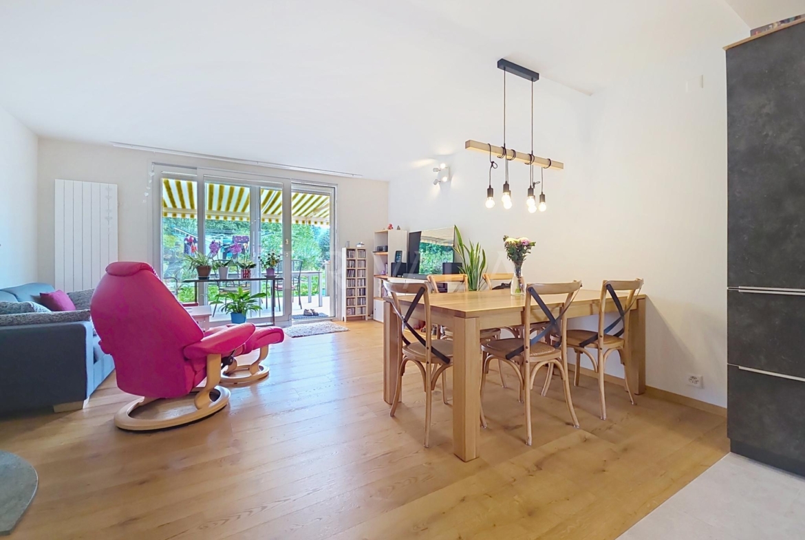 Au sein d’un charmant ensemble villageois composé de villas et d’appartements, elle profite d’espaces de vie harmonieux et bénéficie de prestations de qualité telles qu’une cuisine contemporaine entièrement équipée et agencée avec un four à vapeur, d’un poêle, de multiples rangements, de moustiquaires sur toutes les fenêtres, de combles aménagées et chauffées ainsi que d’une terrasse et d’un petit jardin privatif orienté est prolongé par un espace extérieur aménagé en grand potager.