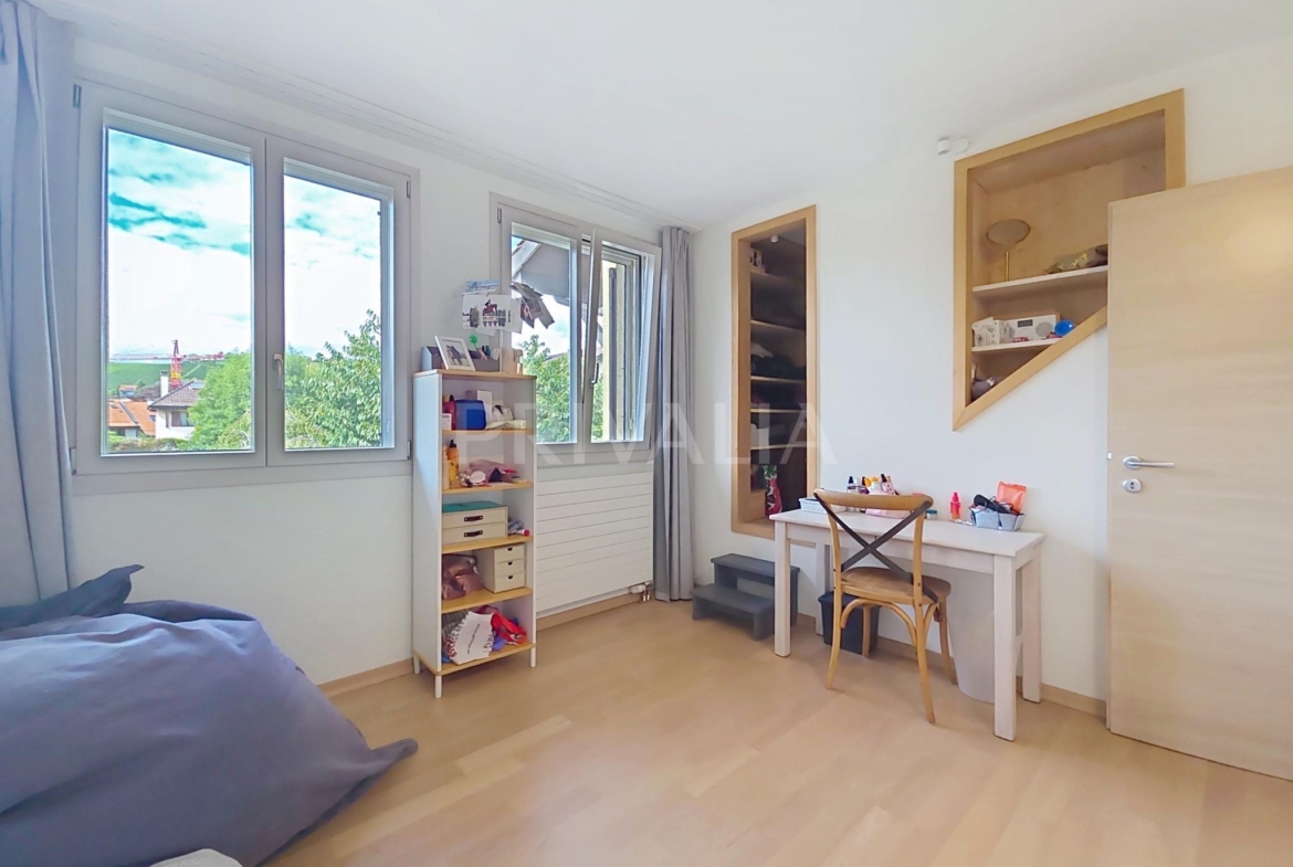 Dans un environnement calme, cette maison profite d’une situation idéale et tranquille, idéale pour une famille, offrant également un jardin et une dalle commune au lotissement. Le bord de l’Aire est accessible à quelques minutes à pieds et offre des magnifiques balades. L’école primaire de Lully-Sézenove se situe à quelques minutes à pieds.