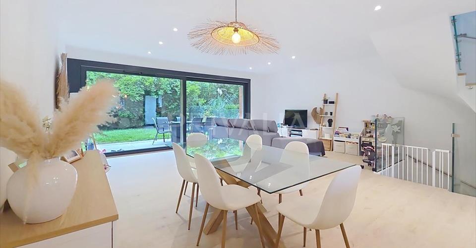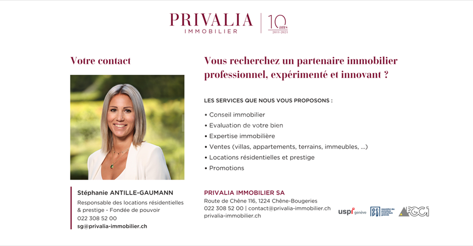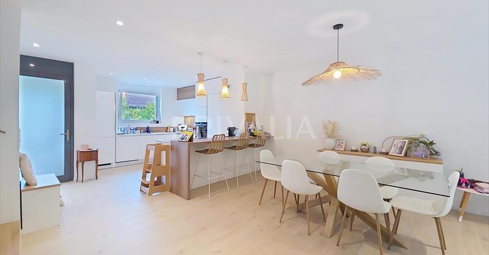 Située dans la charmante commune résidentielle de Confignon, dans un cadre calme et verdoyant, cette belle villa mitoyenne meublée de 6 pièces offre un confort moderne et lumineux à l’abri de toutes nuisances. Construite en 2022 sur une parcelle de 150 m², elle bénéficie d’une surface habitable d’environ 150 m², dont 225 m² utiles, complétée par un jardin privatif d’environ 60 m². Décorée et meublée avec soin, cette maison à l’architecture contemporaine a été conçue avec des matériaux de qualité et des prestations haut de gamme telles que chauffage au sol, grandes baies vitrées, stores électriques, et bénéficie d’une excellente performance énergétique grâce à son système de chauffage par pompe à chaleur (PAC). Répartition des espaces : Rez-de-chaussée : – Hall d’entrée avec placards – WC visiteurs – Cuisine ouverte agencée et entièrement équipée avec bar – Séjour / salle à manger lumineux avec accès direct à la terrasse et au jardin 1er étage : – Suite parentale avec salle de douche / WC attenante, accès à un balcon – 2 chambres à coucher – 1 bureau (ou 3ème chambre) avec accès balcon – Salle de bains avec WC Sous-sol : – Vaste pièce polyvalente avec lit escamotable – Local technique (PAC) et buanderie équipée 2 places de parking extérieures complètent le bien, avec borne de charge électrique. À proximité immédiate des commodités (transports publics, commerces, écoles, poste, cycle d’orientation, etc.) ainsi que des bains de Cressy et du tennis club de Confignon. L’accès aux Organisations Internationales et à l’aéroport est possible en moins de 15 minutes. Le quartier est desservi par de nombreuses lignes de bus (n°2, 21, 42, 43, 63, J, K, N) ainsi que par le tram 14 et le noctambus S. De belles balades sont également possibles dans la campagne environnante et le long de la rivière de l’Aire. Charges à 400.- / mois comprenant l’eau, le chauffage, l’électricité, TV / wifi et les diverses maintenances. Bail à terme fixe non renouvelable de 6 mois : du 01.01.2026 au 30.06.2026 Location meublée
