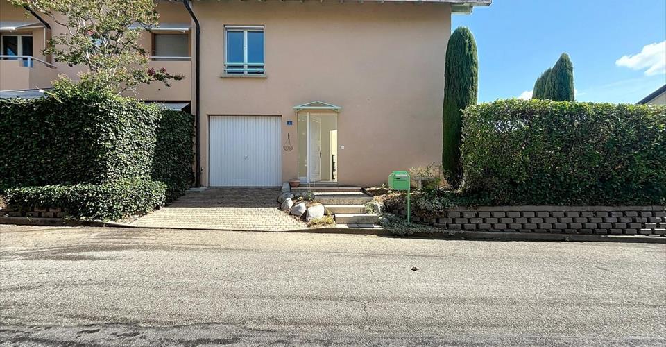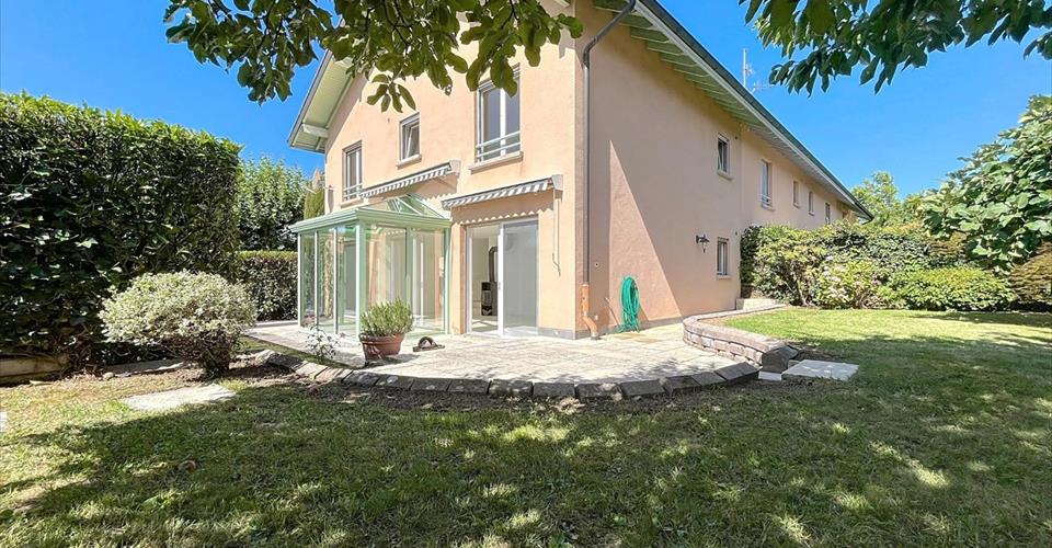 Cette villa mitoyenne se situe au calme dans le village de Meinier. En très bon état, elle jouit d’un jardin à l’abri des regards. Elle se compose comme suit : Rez : hall d’entrée, grand salon/salle à manger avec poêle à bois et accès jardin, cuisine fermée entièrement équipée. Box. 1er étage : 3 chambres à coucher dont principale avec salle de bains attenante, 1 salle de douche, dressing. Toilettes séparées. Combles : grande pièce polyvalente avec de nombreux rangements. Sous-sol : WC séparé, Buanderie, chaufferie, cave, accès à un parking commun avec 1 emplacement supplémentaire + 1 place de parc extérieure. Les charges sont individuelles