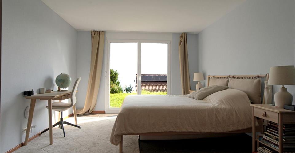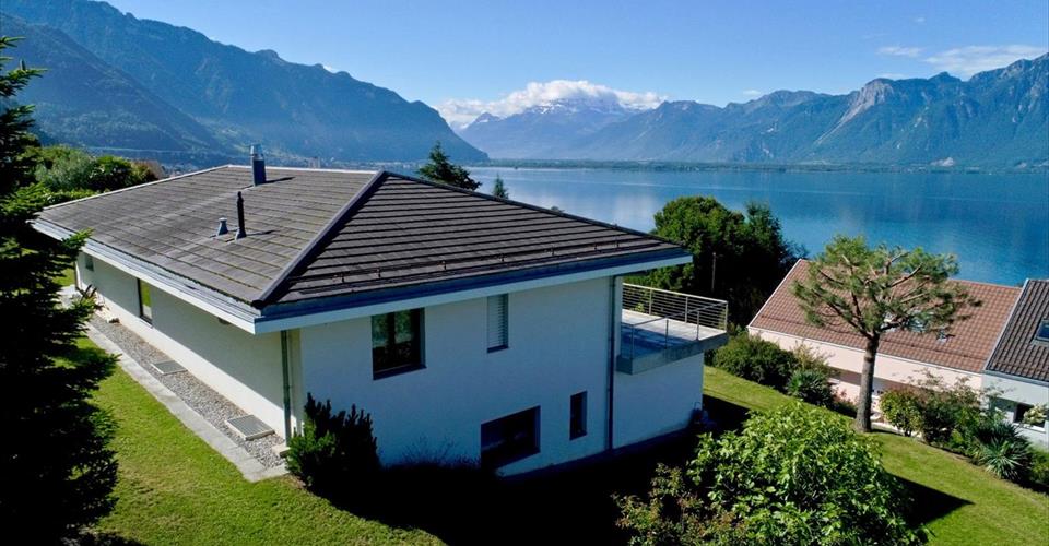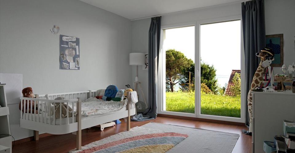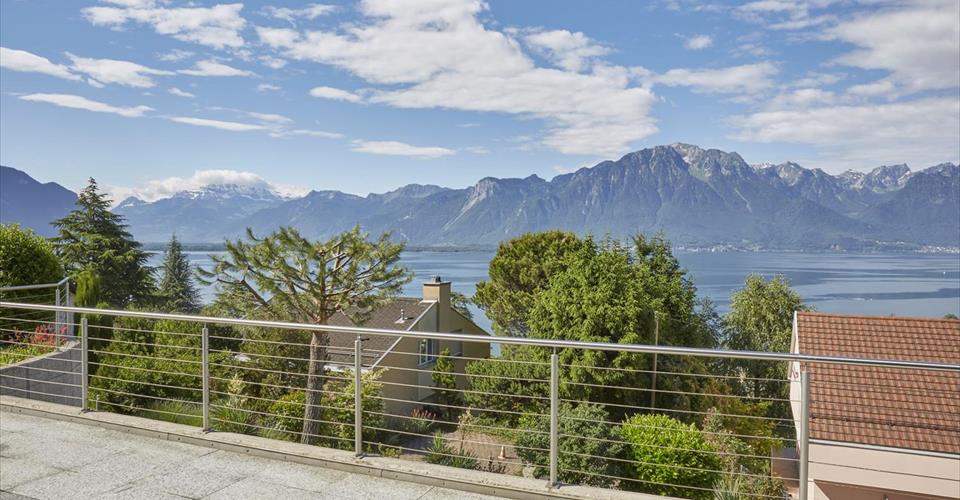 Implantée sur une parcelle de 1’266 m2 dans les hauteurs de Clarens, à cinq minutes en voiture du centre de Montreux, cette magnifique propriété offre une surface habitable de 223.5 m2 (surface utile de 318.7 m2). Le bâtiment est une construction contemporaine de 2006, organisée sur 2 niveaux. Elle offre 4 chambres à coucher spacieuses. Deux salles de bains, dont une ensuite de la chambre à coucher principale, et un WC visiteurs sont repartis sur les deux étages de la propriété. Un local disponible au rez pourrait recevoir des couchages d’appoint supplémentaires. A l’étage, avec une vue encore plus belle, la cuisine est richement équipée, avec un économat séparé. Le vaste séjour, avec cheminée traversante, communique avec un large espace salle à manger. Les pièces de jour accèdent grâce à de grandes baies vitrées à la généreuse terrasse en partie couverte. Les vues sur le lac y sont splendides. Le garage est particulièrement spacieux. On peut y stationner jusqu’à 3 véhicules et 2 voitures peuvent se garer dans la cour. Le jardin auquel on accède de la terrasse à l’étage est joliment arboré. Il est en grande partie plat et nécessite un entretien raisonnable. Loyer net : CHF 9’500.- + charges individuelles Disponibilité : à convenir (Photos du mobilier non contractuelles)