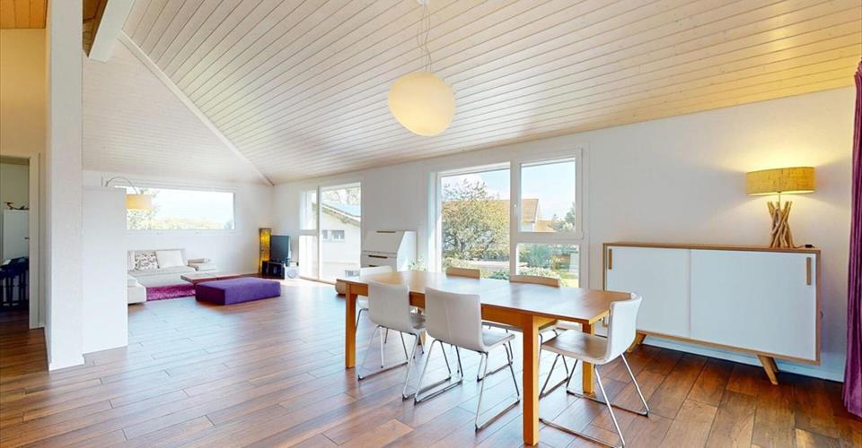 Savigny 1073 Savigny se situe dans le district de Lavaux-Oron, dans le Canton de Vaud. La population dans la commune politique de Savigny a varié au cours des cinq dernières années de +0,5% en moyenne par an, s’élevant à 3 449 habitants (Etat le 31 déc. 2023). Le taux d’imposition est de 13,8% (canton: 13,8%). Durant les cinq dernières années, la construction de logements dans la commune s’est élevée à 0,3% en moyenne par an, alors que le taux de logements vacants actuels est de 0,3% (Etat le 1er juin 2024). Les prix immobiliers ont varié de +19,5% au cours des cinq dernières années (canton: +21,2%). Villa individuelle au coeur de la campagne Découvrez cette maison individuelle moderne et parfaitement entretenue, construite en 2013. Implantée sur un généreux terrain de 1207 m², cette propriété offre une surface habitable nette de 144 m² avec une orientation sud-ouest, bénéficiant d’une vue dégagée sur la campagne environnante. Répartie sur deux niveaux, cette villa de 5.5 pièces propose 4 chambres spacieuses, dont une est actuellement aménagée en bureau. Vous y trouverez également deux salles de bain ainsi qu’un WC visiteurs, offrant tout le confort nécessaire pour une famille. Le système de chauffage performant et économique, grâce à une pompe à chaleur air-eau combinée à des panneaux solaires photovoltaïques, assure un chauffage au sol pour un confort thermique optimal. À l’extérieur, un magnifique balcon de 37 m² vous invite à profiter du cadre paisible et verdoyant. Un spacieux garage intégré de plus de 30 m² ainsi que trois places de parking extérieures complètent cette belle propriété. Loyer : CHF 4’200.00 + charges individuelles