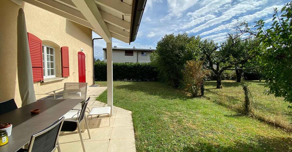 Cette charmante villa jumelée par le garage d’environ 130 m2 avec jardin d’environ 340 m2 située à Thônex est composée comme suit : Rez-de-chaussée : hall d’entrée avec vestiaire, toilettes visiteurs, séjour donnant sur la terrasse et le jardin, cuisine équipée ouverte sur le séjour. 1er étage : 4 chambres, 1 salle de bains/wc et une salle de douche/wc. Sous-sol: chambre d’appoint, salle de jeux ou bureau (pièce chauffée), salle de douche/wc, buanderie équipée, chaufferie au gaz. Garage avec porte automatique et un parking extérieur Bien exposée sud-ouest Charges individuelles