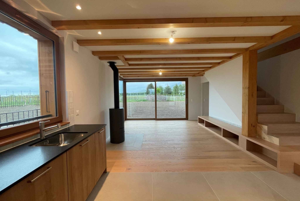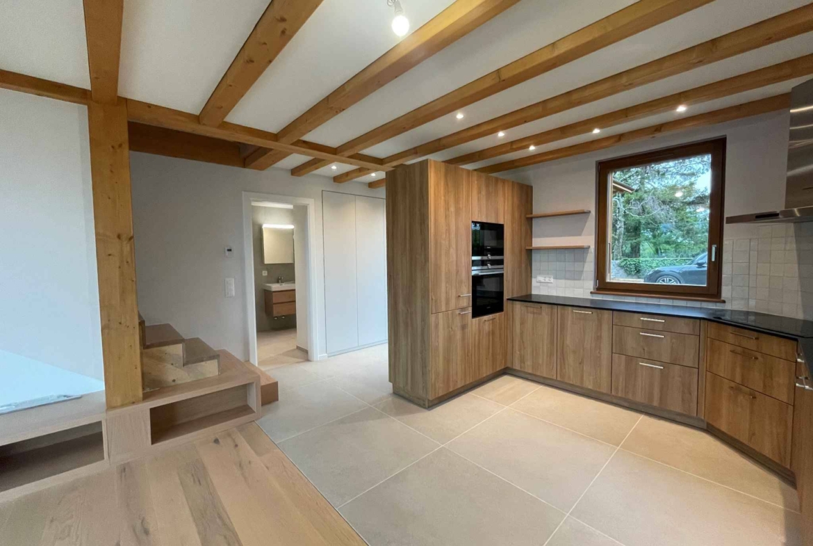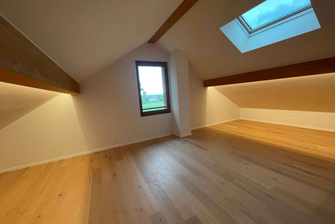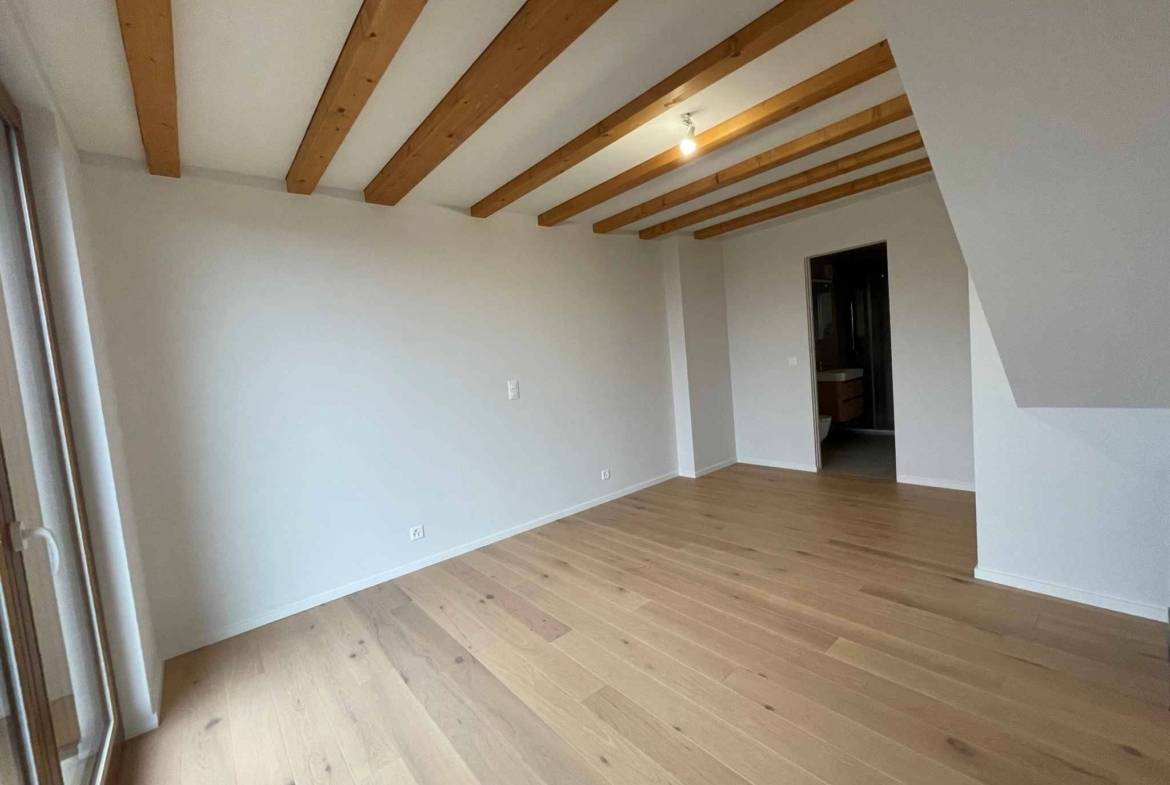 Situé sur la commune de Jussy, au calme de la campagne Genevoise, grand corps de ferme du XIII siècle et sa grange accueillant 4 logements triplex aux prestations de qualité.