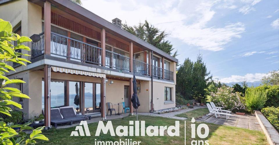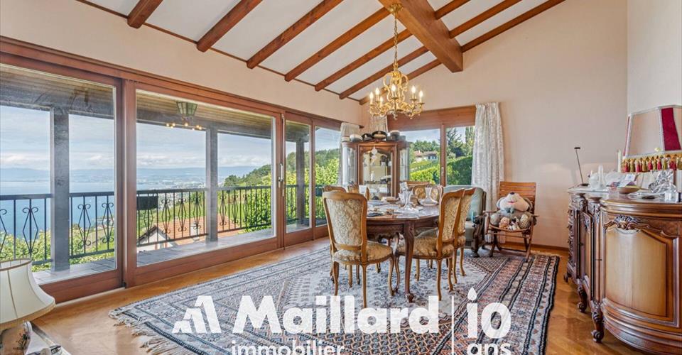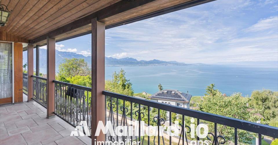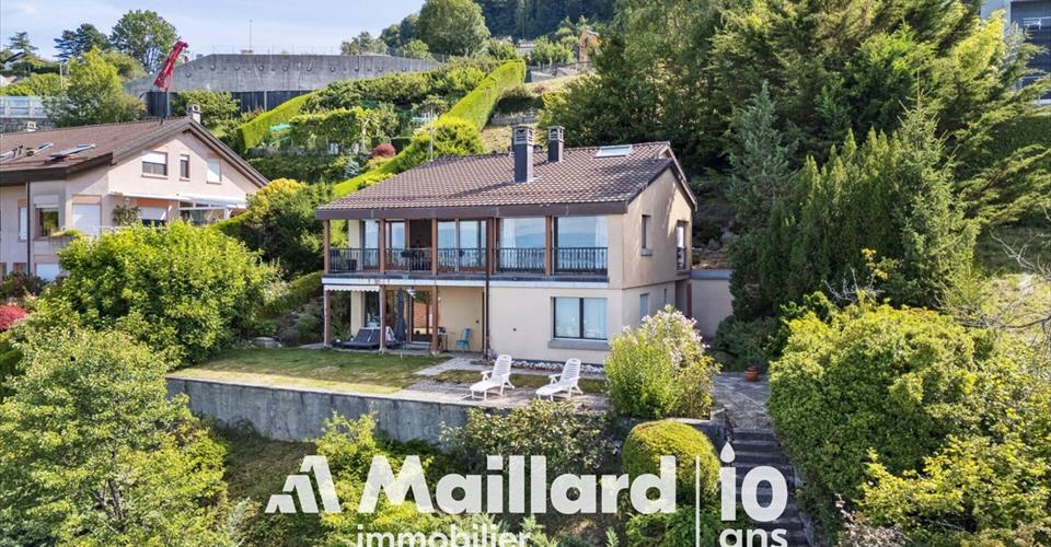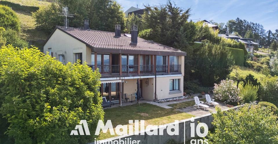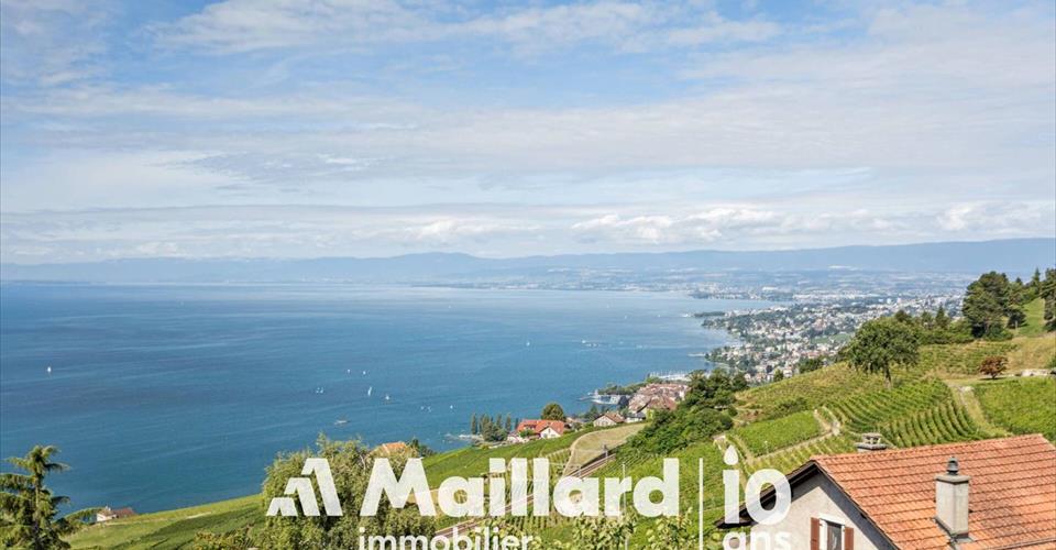 Villa de deux logements avec vue à couper le souffle Une exclusivité Maillard Immobilier ! En plein coeur du Lavaux – villa composée de deux logements avec vue à coupe le souffle sur le lac et les Alpes. Idéalement située à Grandvaux, cette villa construite en 1982 dans un style traditionnel, bénéficie d’un emplacement d’exception sur une parcelle dominante de 1’368 m². Elle offre une vue panoramique et époustouflante sur le lac Léman et les Alpes, dans un environnement calme et verdoyant au coeur du Lavaux, région classée au patrimoine mondial de l’UNESCO. La maison se compose actuellement de deux logements indépendants, chacun avec sa propre entrée. La distribution intérieure est fonctionnelle et généreuse, avec des pièces à vivre baignées de lumière naturelle grâce à une belle orientation plein sud. De larges baies vitrées prolongent les espaces de vie vers l’extérieur, offrant un accès direct aux terrasses et au jardin. Le bien dispose de plusieurs chambres, de deux cuisines, de salons spacieux, ainsi que de pièces annexes utiles telles que caves, réduits, buanderie etc…. Deux garages-box, plusieurs places de stationnement extérieures ainsi qu’un accès aisé complètent cette propriété. Cette jolie villa, bien qu’habitable en l’état, possède beaucoup de potentiel. Néanmoins une rénovation selon les critères de confort de chacun, peut-être envisagée. Ses espaces à vivre sont confortables et son jardin spacieux feront le bonheur d’une ou deux familles. Un bien idéal pour accueillir une famille intergénérationnelle ou deux foyers proches À noter : l’accès à la maison se fait par un escalier comprenant un nombre important de marches. Cet aspect est à considérer en fonction des besoins et des contraintes de mobilité de chacun. Tout en profitant d’un cadre de vie exceptionnel, la villa se trouve à proximité immédiate des écoles, commerces, transports publics et de la gare de Grandvaux, permettant de rejoindre Lausanne en quelques minutes. Aline Jaquier