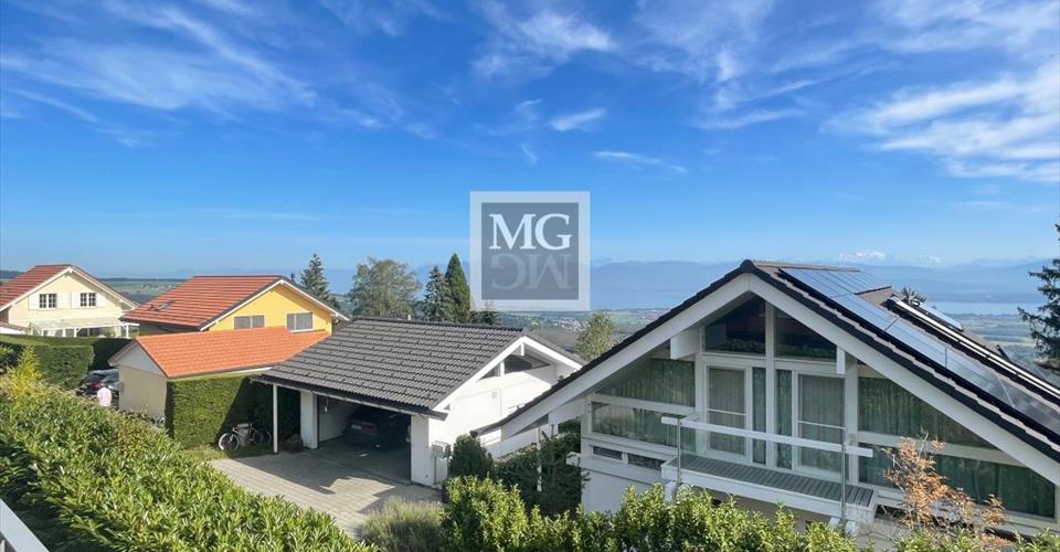 MG Realty vous propose une villa contemporaine d’exception à Arzier-Le Muids, conçue pour répondre aux attentes les plus exigeantes en matière de confort, d’espace et de panorama. Vivez l’exclusivité dans un cadre idyllique Au cœur d’un quartier résidentiel paisible, à l’abri de toute nuisance automobile, cette somptueuse villa de 7.5 pièces offre un environnement privilégié, parfait pour une vie de famille épanouie. Profitez chaque jour d’une vue spectaculaire sur le lac Léman et le Mont-Blanc, un spectacle naturel à couper le souffle depuis votre terrasse ou votre salon. Des volumes généreux et une luminosité incomparable Grâce à son orientation Sud-Est, la villa bénéficie d’une lumière naturelle abondante qui sublime ses vastes espaces de vie. La terrasse panoramique de 80 m², baignée de soleil, invite à la détente et aux moments de convivialité en famille ou entre amis. Le jardin entièrement clôturé, soigneusement paysagé, garantit intimité et sécurité pour petits et grands. Un bien rare, alliant modernité et sérénité Cette propriété, lumineuse, spacieuse et parfaitement entretenue, marie à la perfection le confort contemporain et la beauté d’un cadre naturel exceptionnel. Chaque détail a été pensé pour offrir bien-être et qualité de vie à toute la famille. Ne manquez pas cette opportunité unique de vivre dans l’une des plus belles villas d’Arzier-Le Muids, où chaque jour rime avec panorama, tranquillité et élégance. Caractéristiques: Surface utile totale : env. 400 m² Parcelle : 968 m² Terrasse panoramique : 80 m² avec vue imprenable sur le bassin lémanique Sauna privé : pour des moments de détente absolue Cheminée : ambiance chaleureuse garantie Chauffage : chaudière à mazout avec distribution par le sol Jardin clos : idéal pour profiter des beaux jours en toute tranquillité Parking : 2 places extérieures + grand garage double Disponibilité: Dès le 31 juillet 2025 Nous sommes également à votre service le Samedi sur rendez-vous ! RENSEIGNEMENTS ET VISITE: MG REALTY Sàrl Marc Gruber Mobile: 079 290 46 46