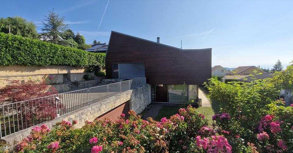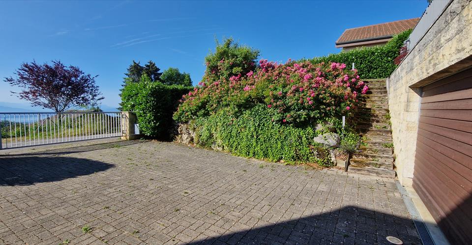 Spacieuse maison de 400m2 utiles, 4 chambres, 3 salles de bains, un sauna, deux pièces modulables en bureau ou chambre supplémentaire. Vaste cuisine équipée ouverte sur le salon cathédrale. La parcelle de 968m2 entièrement cloturée et arborée, est très bien aménagée avec jardin, terrasse et bassin d’agrément. Plusieurs places de parking et un grand garage double. Idéalement située a mi-chemin entre Genève et Lausanne, avec vue sur le Lac et les Alpes A voir sans tarder