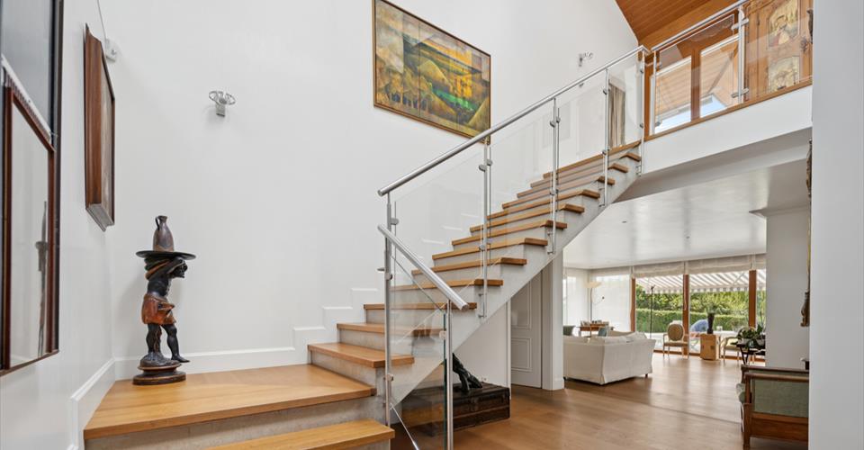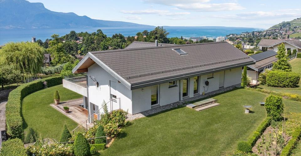 Découvrez cette élégante maison individuelle, idéalement située dans le prestigieux Domaine privé de Jolimont, à St-Légier. Répartie sur deux niveaux et bénéficiant d’environ 400 m² habitables (525 m² utiles), elle offre un confort de vie remarquable dans un cadre verdoyant et sécurisé, avec une vue panoramique sur le lac Léman et les Alpes. Accès direct à l’espace commun avec piscine et sauna Grande parcelle paysagée avec terrasses et jardin Garage box pour 3 voitures et 4 places extérieures Environnement calme, intimité préservée