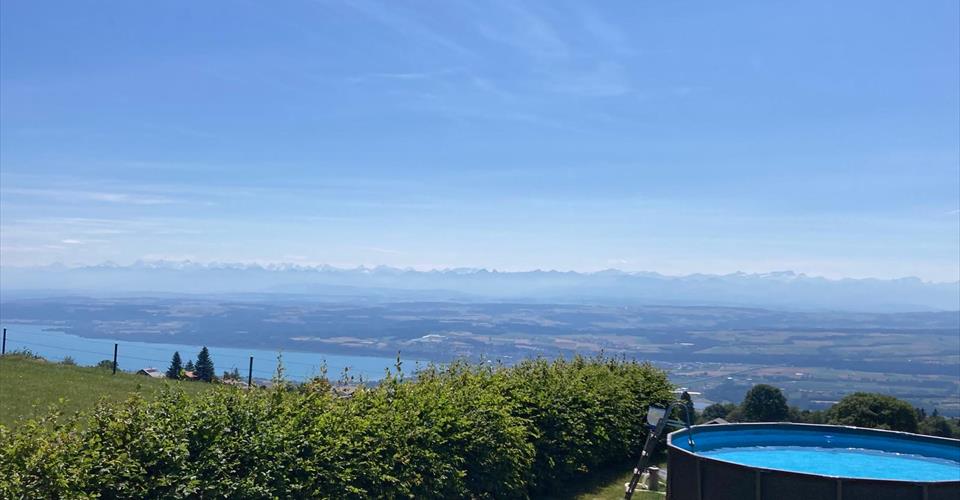 A découvrir sans plus tarder, cette villa individuelle sans vis-à-vis, d’un charme exceptionnel avec une vue panoramique sur la chaîne des Alpes, les lacs, et les villes comme Yverdon Les Bains, Yvonand, Évian … Cette maison bien éclairée est conçue pour une vie confortable et ordonnée. Ne manquez pas cette opportunité unique de devenir propriétaire de cette splendide propriété. Vous serez séduit par l’emplacement et l’aménagement de cette maison. Située sur un terrain de 1100 m² de pelouse, elle bénéficie d’un ensoleillement toute la journée. Accessible par un chemin privé avec 3 places de parking, cette maison offre une entrée couverte, un double garage de 50 m² comprenant deux portes sécurisées et motorisées, un galetas et un accès au sous-sol par l’intérieur et l’extérieur. Caractéristiques principales Construite en 2010, cette magnifique maison indépendante vous offre un cadre de vie unique avec une vue imprenable sur les lacs de Neuchâtel, du Léman, la chaîne des Alpes et du Mont-Blanc. Cette propriété se distingue par son emplacement privilégié et par sa discrétion. Année de construction : 2010 Surface terrain : 1100 m² Vue : Lac de Neuchâtel, Léman, Mont-Blanc, chaîne des Alpes. Fenêtres : Moustiquaires intégrées, rideaux électriques, double vitrage. Isolation : Isolation périphérique des murs en extérieur. Toit isolé en sous toiture et entre chevrons. Système de chauffage : Chauffage au sol, bois mazout, panneaux solaires thermiques et cheminée centrale. Plus d’informations sur notre site.