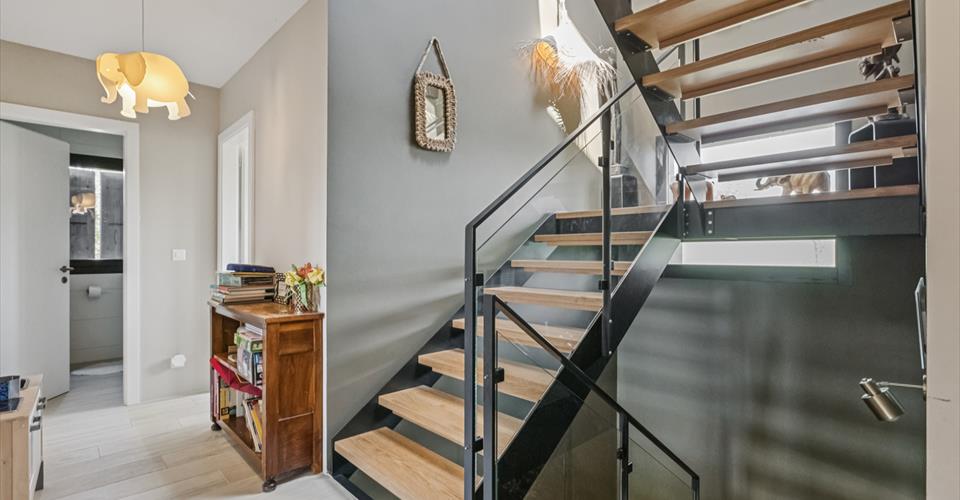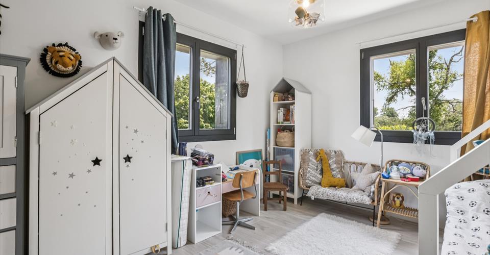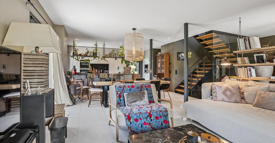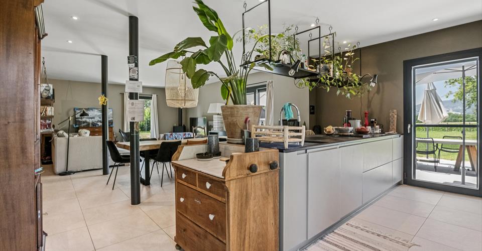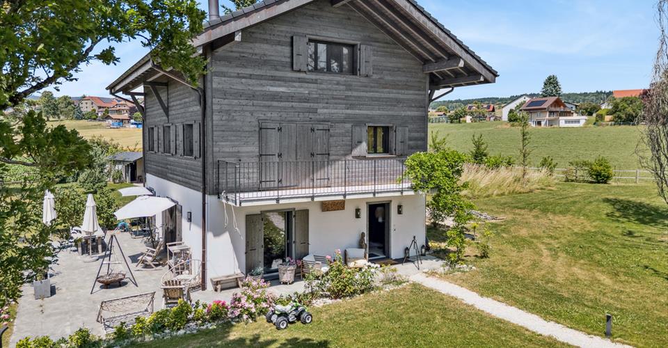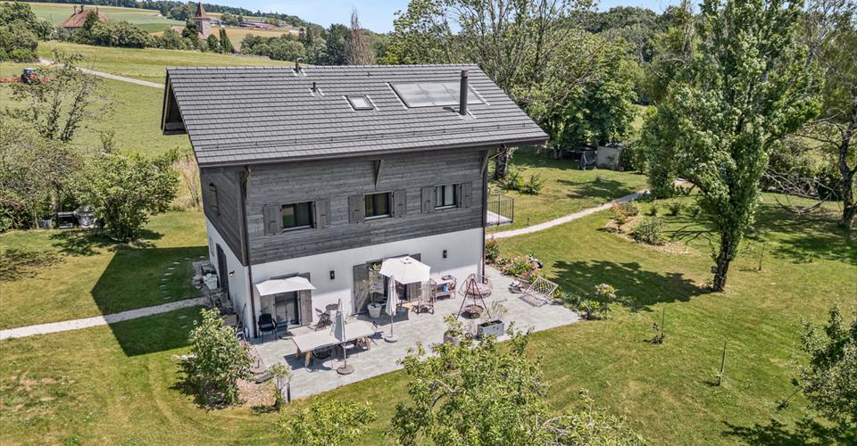 Située dans un environnement verdoyant et paisible, cette maison familiale de 7,5 pièces offre un cadre de vie idéal pour les amateurs de calme et de nature, tout en restant proche des commodités. Construite en 2020 avec des matériaux de qualité, elle est durable et éco-énergétique (panneaux solaires, pompe à chaleur), garantissant une faible empreinte écologique. Son orientation optimale et ses nombreuses baies vitrées lui confèrent une luminosité exceptionnelle et une connexion fluide avec l’extérieur.